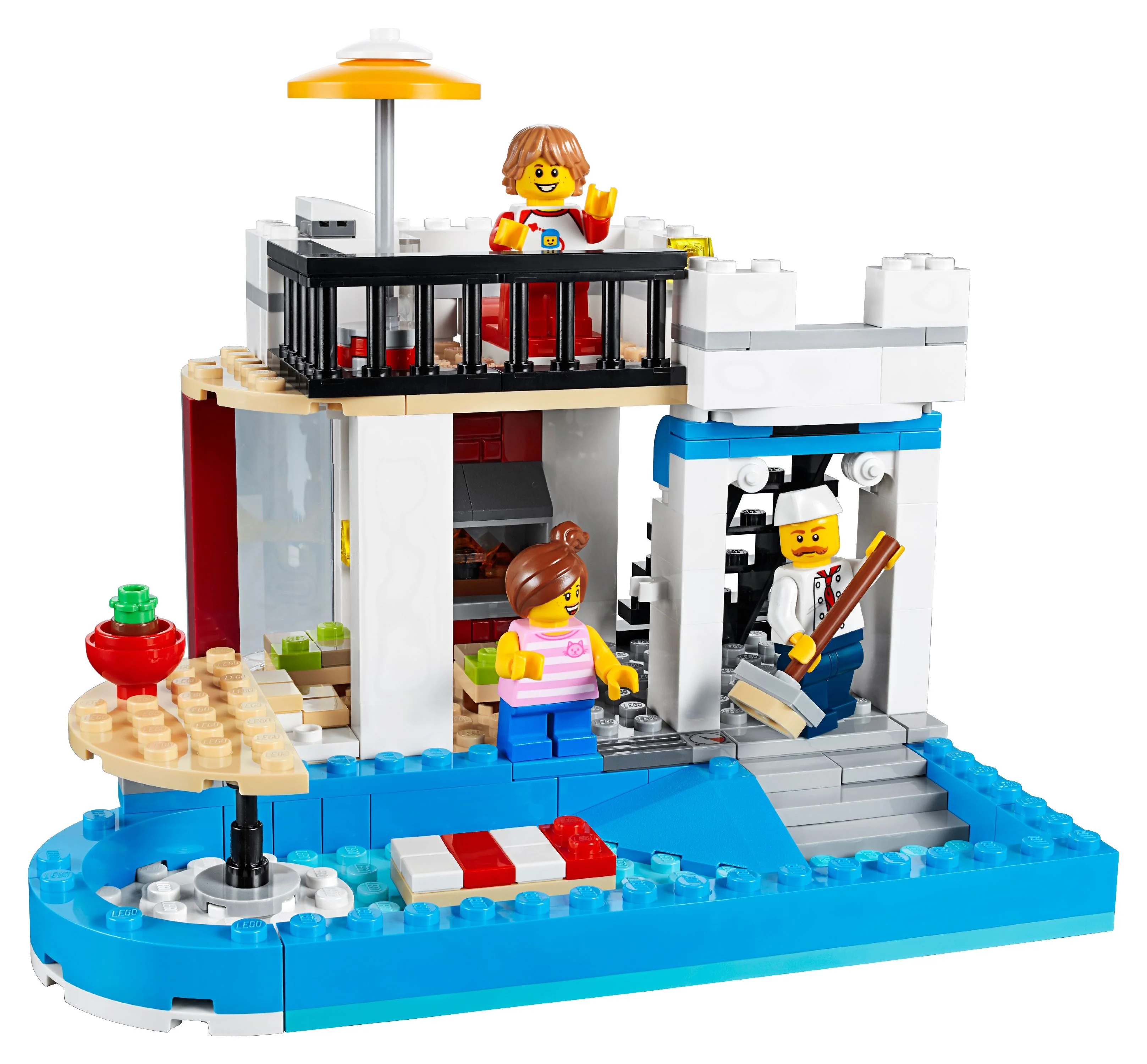 $55.89Enjoy a wealth of summer activities with the Poolside Holiday set, featuring a house with a red and tan color scheme, rooftop terrace with flowers and barbecue, and a garden area with trees, greenery, swimming pool and a table tennis table with rackets. Interior details include a guitar amplifier, flat-screen TV and a sofa. Mix and match the buildable modules to create a rooftop pool or a rooftop garden, and easily swap the window, door and other modular sections to customize the house with the new-for-June-2017 LEGO® Creator modular system. Combine this set with the 31068 and 31069 modular-system sets to create a dream house with endless build and play opportunities! This 3?in?1 LEGO Creator model can also be rebuilt to create a Skate Park Holiday or a Music Garage Holiday. Includes 2 minifigures.