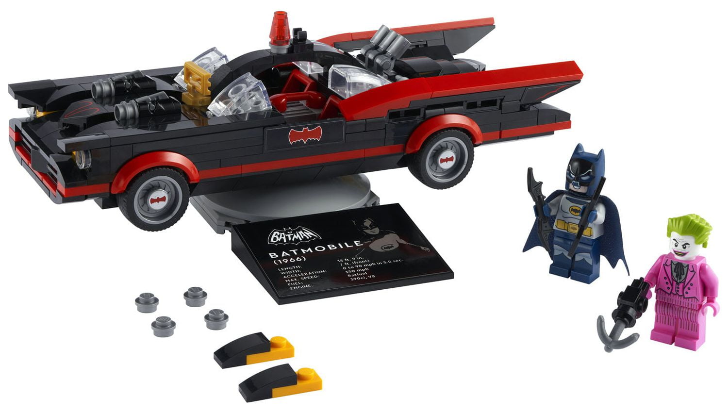 $94.59LEGO DC batman: Batman classic TV series Batmobile (76188) gives kids all the style, action, and excitement of the original 1966 Batman TV series. Kids can play out endless batman adventures with this impressive Batmobile, plus batman and the joker Minifigures from the original TV series. This amazing vehicle includes an opening trunk containing a Bata rang and additional bricks that kids can use to customize the car’s hood so it appears with or without the stud shooters. When the action’s over, the Batmobile can be displayed on a rotatable stand that lets kids display their awesome, crime-fighting machine at its best.
