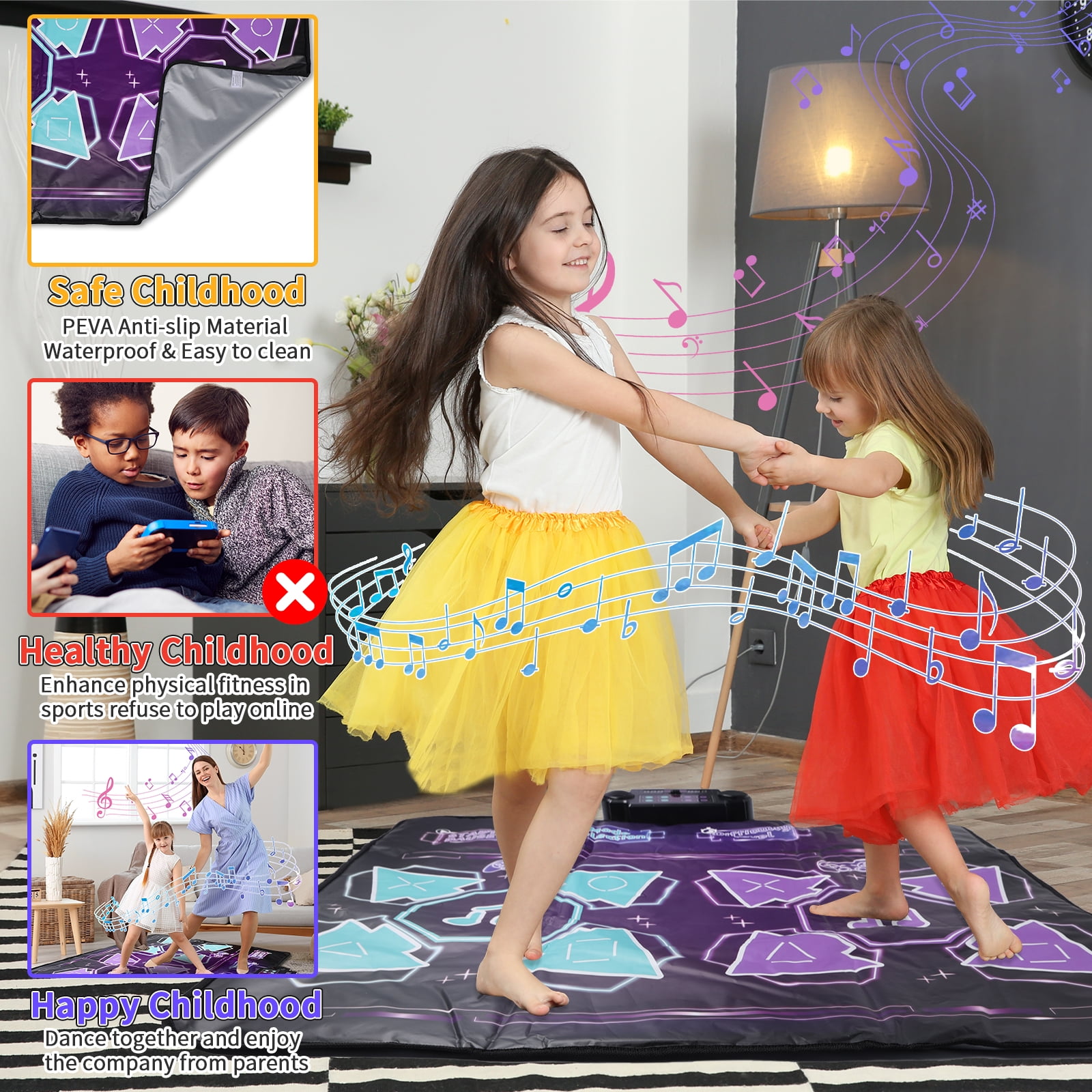 AOKESI Kids Dance Mat Toys, 2-Player Dance Pad Electronic Dancing Challenge Palymat w/ Music Optional Single/Double Player Game Modes, Double Dance Pad Christmas Gift for Girls Boys (Purple)