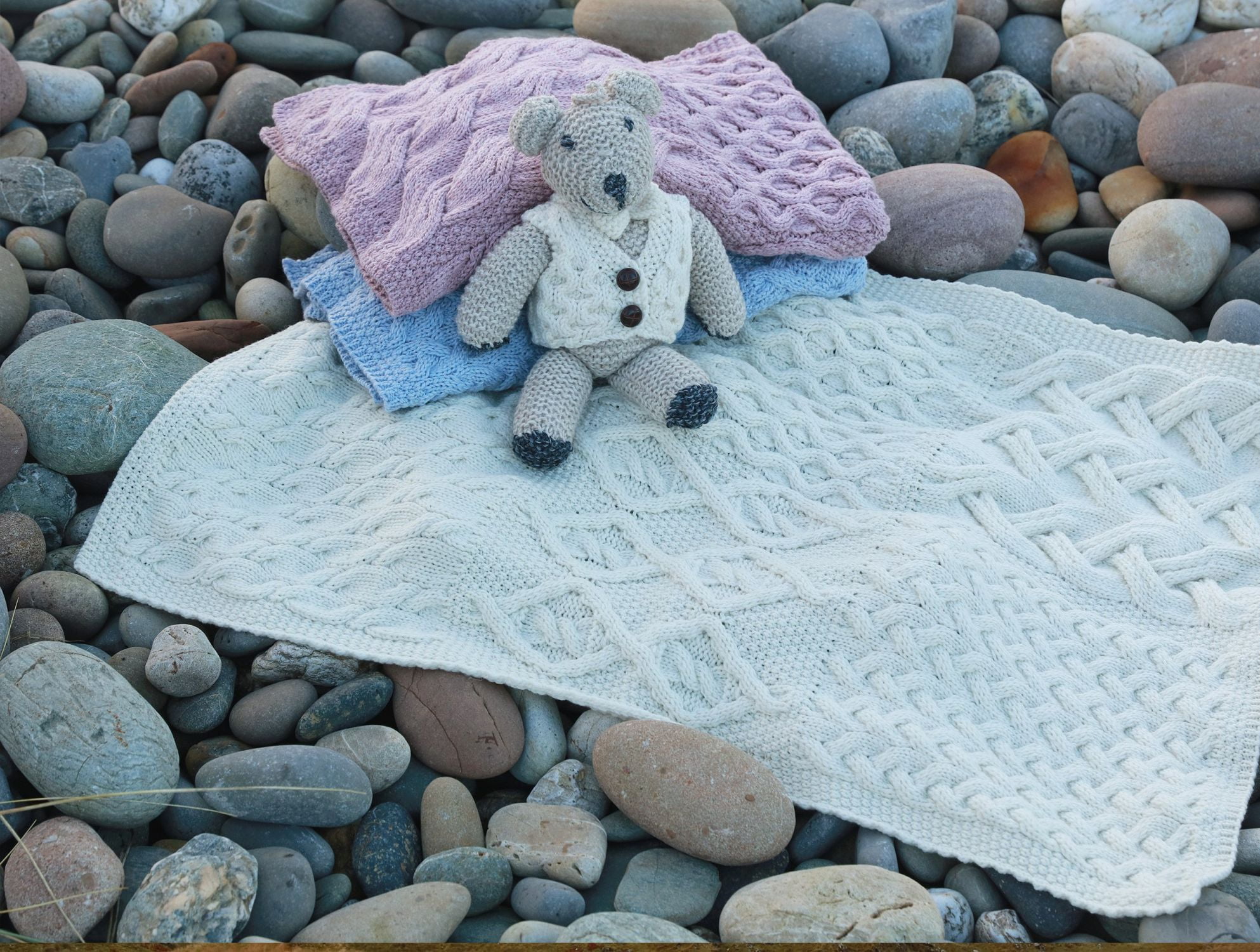 Aran Woollen Mills Supersoft 100% Premium Merino Wool Patchwork Baby Blanket Knitted Throw for Kids 22″ x 23″ Made in Ireland (Pink)