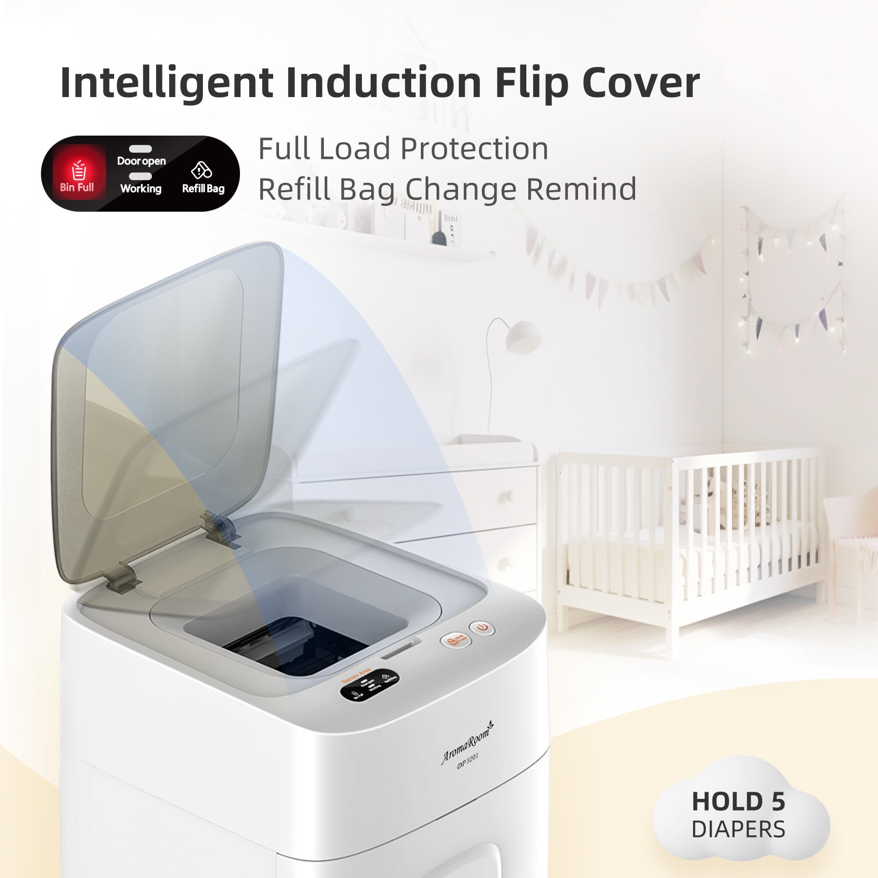 Aroma Room Electric Full-Automatic Odor-Locking Diaper Pail with 36 Count Bags, White