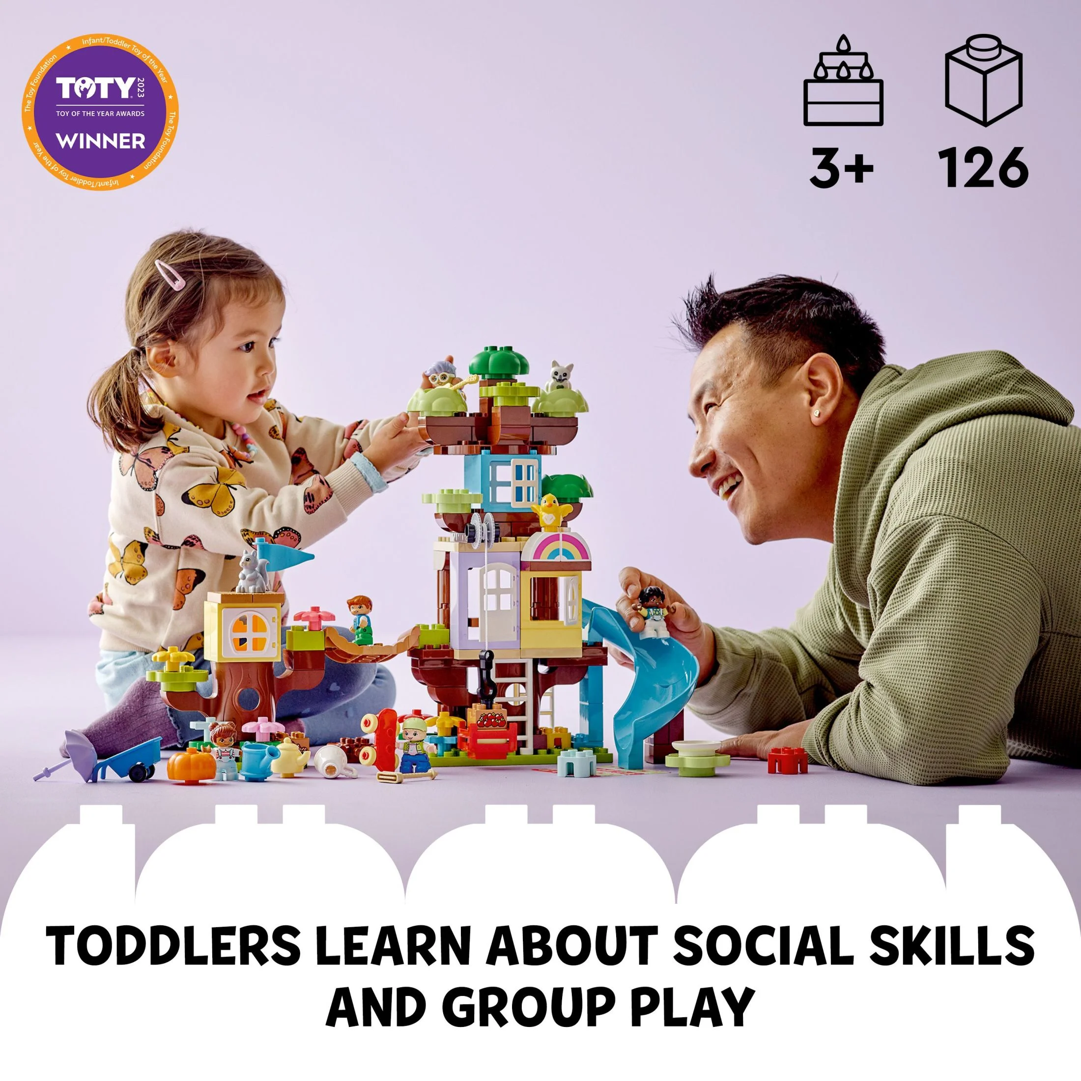LEGO DUPLO 3in1 Tree House 10993 Creative Building Toy for Toddlers, Includes 8 Figures for Teaching Social Skills, Playing Together and Group Play, Great Birthday Gift for Kids