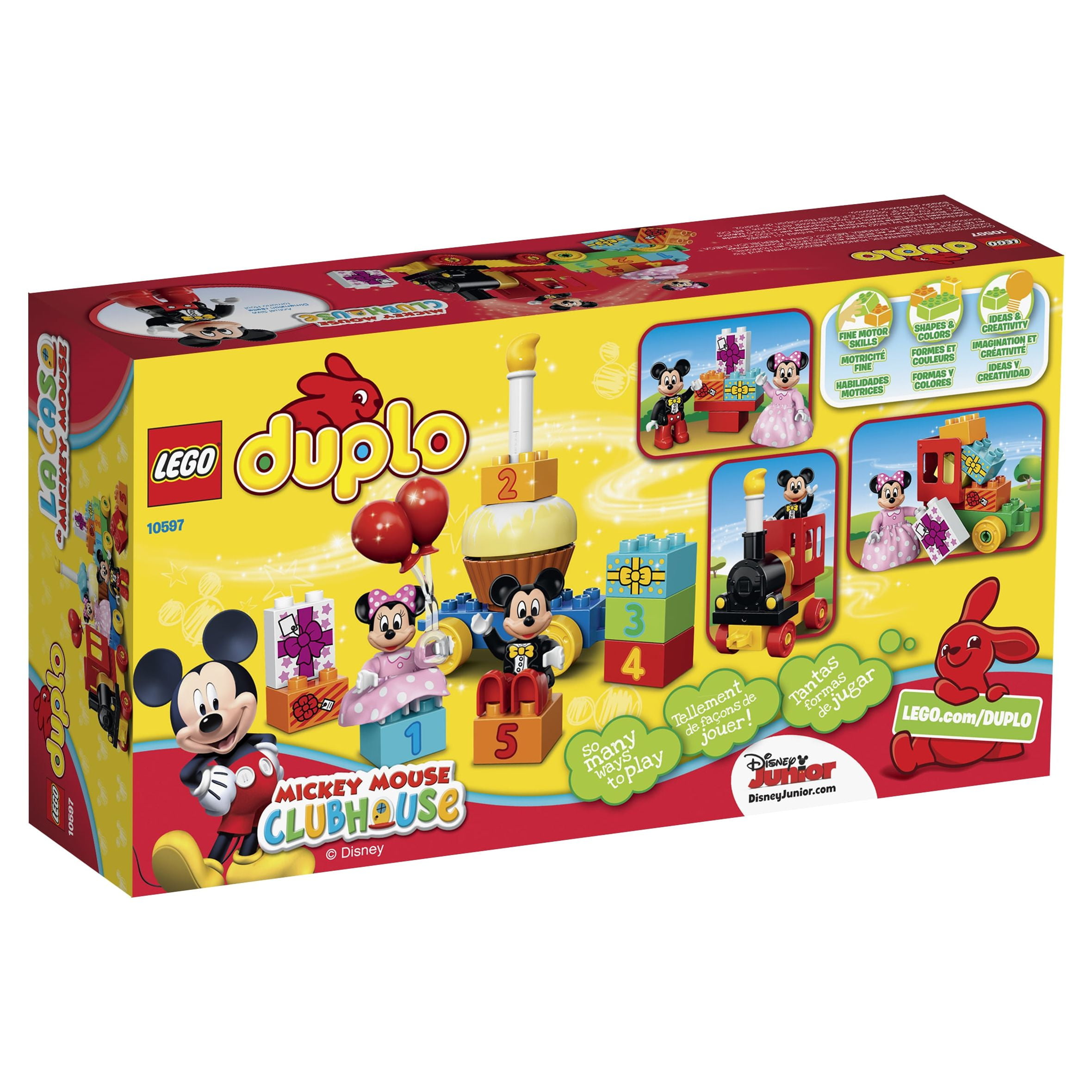 $31.80All aboard the Mickey Mouse Clubhouse birthday train as Mickey and Minnie throw a parade in your honor! Load up the train with everything you need for the perfect birthday party—a buildable cake, balloons and decorated gift bricks. How old are you today? With decorated age bricks numbered from 1 to 5, Mickey and Minnie can bring birthday fun year after year. Young children will love the endless birthday role-play opportunities and developing their construction skills with the big, bright LEGO® DUPLO® bricks designed especially for budding builders.