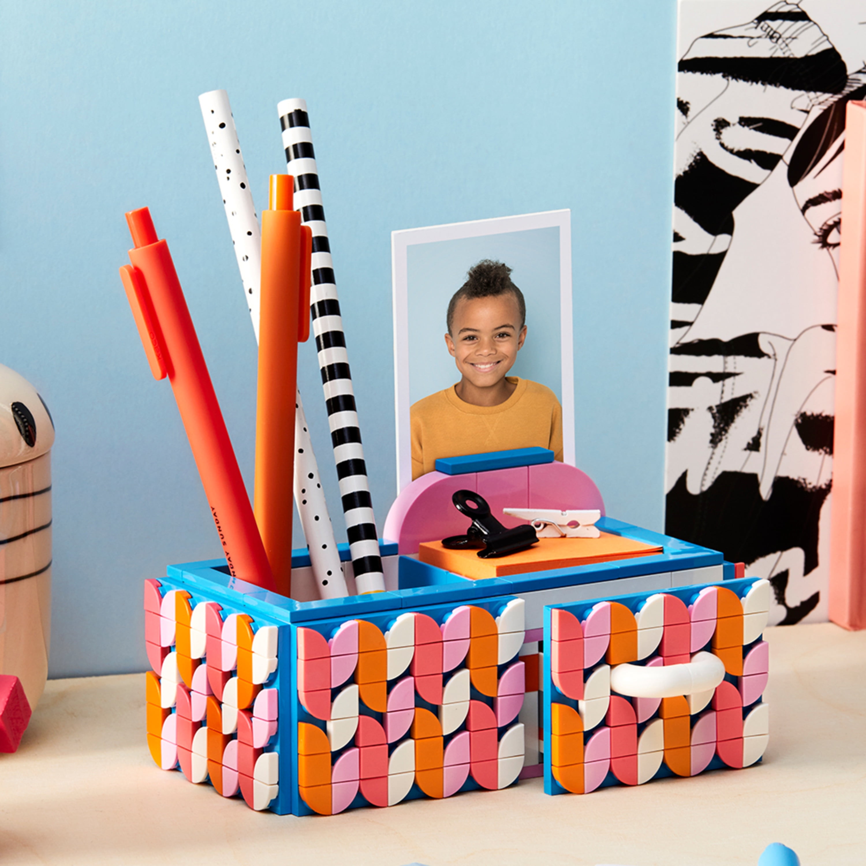 $55.89Original price was: $55.89.$30.92Current price is: $30.92.Appeal to arts and crafts lovers with this cool LEGO DOTS (41907) Desk Organizer set! Made to be quickly and easily assembled, this DIY toy offers kids the chance to create and decorate their own desk organizer with working drawer, then redesign the pattern over and over. Cleanup and sorting are a breeze thanks to the enclosed storage tray. This pretty set features a multicolored desk organizer with 2 sections to hold pencils, paperclips or other office supplies, an opening drawer with a white handle to hold precious items and a photo holder, plus colorful tiles to stretch kids’ imaginations and self-expressive play skills while making the desk organizer uniquely theirs. The joy of this toy is the chance for kids to be imaginative and decorate the desk organizer however they like, to match their mood or their room or share their designs with friends. It makes a great gift for holidays, birthdays or any time.