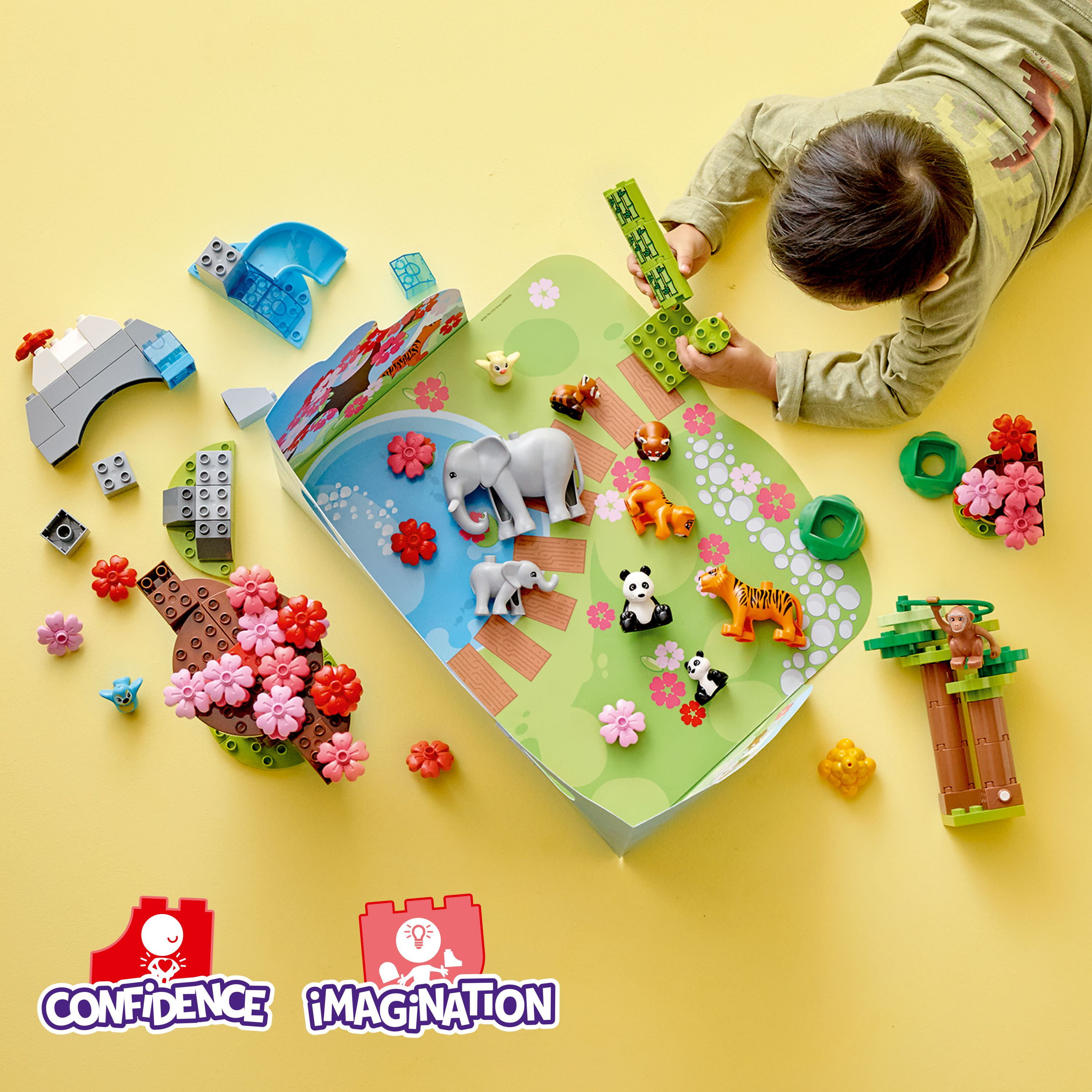 LEGO DUPLO Wild Animals of Asia 10974, Bricks Set with Panda & Elephant Baby Animal Toy Figures plus Sounds, Toys for Toddlers, Girls & Boys Age 2 – 5