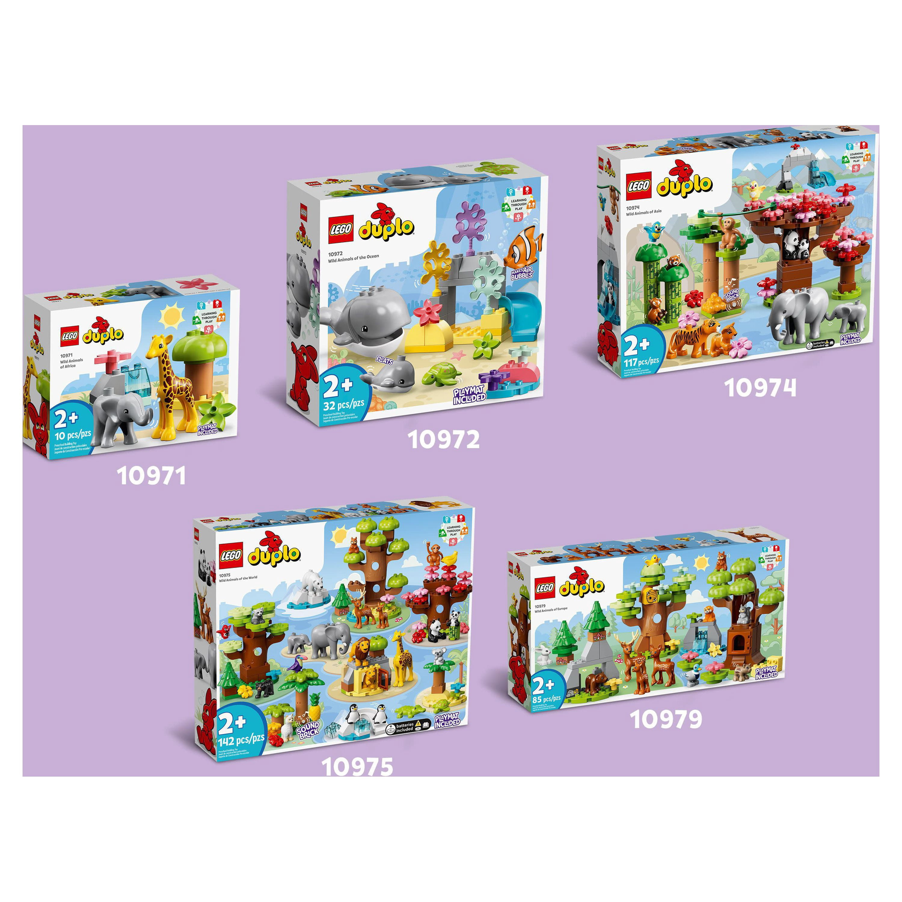 LEGO DUPLO Wild Animals of The World Toy 10975, with 22 Animal Figures, Sounds and World Map Playmat, Educational Animal Building Kit, Learning Toy, Gift for Toddlers, Girls, Boys 2-5 Year Old