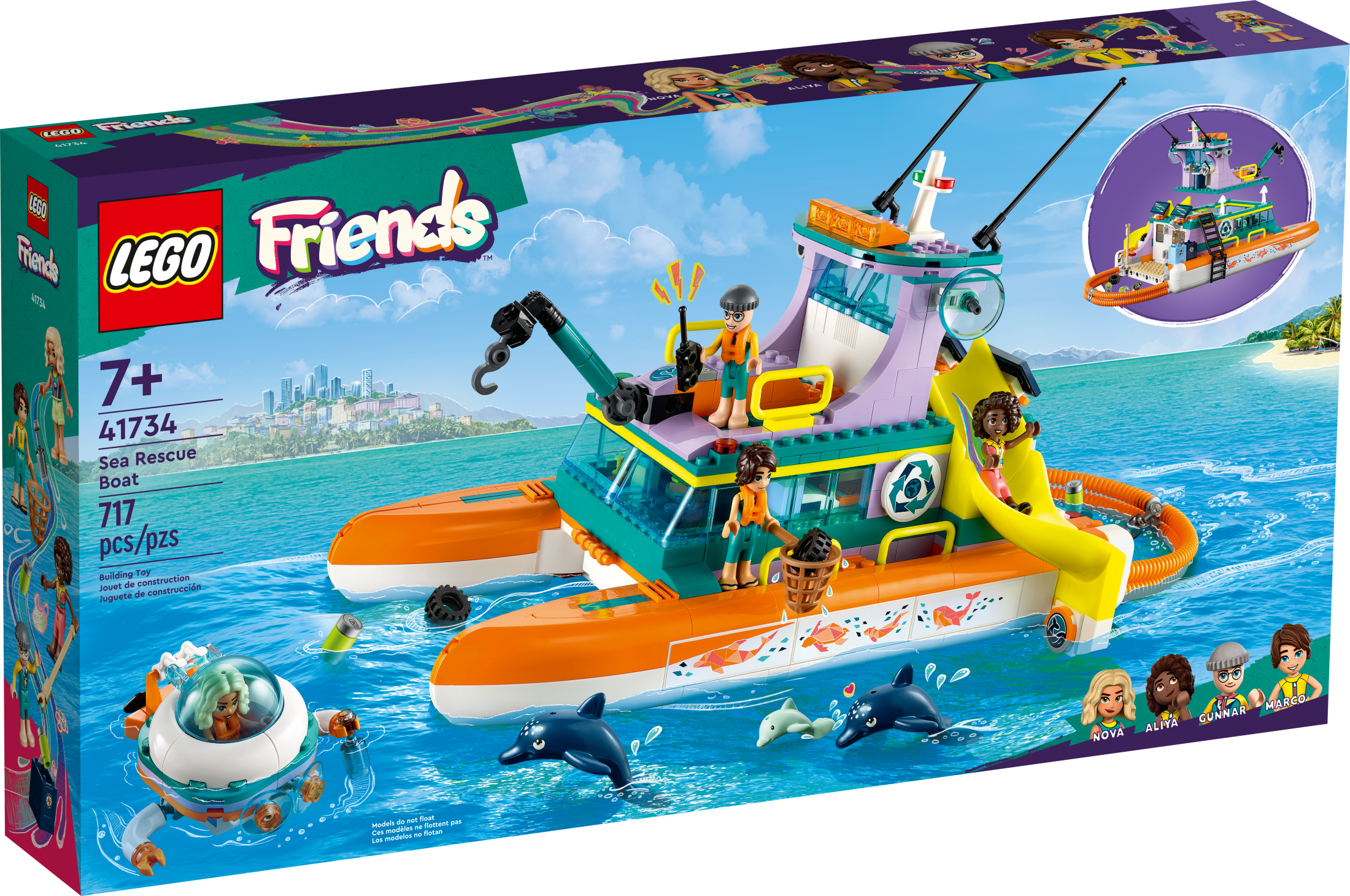 $103.19LEGO Friends Rescue Mission Boat Building Kit Sea Creatures for Creative Play 908pc Give hours and hours of thrilling adventure fun with this ultimate LEGO rescue cruiser, which comes packed with engaging features, such as a swiveling crane, removable deck and speedboat launcher that are sure to get imaginations firing,This toy playset includes 3 mini-dolls: Olivia, Andrea and Mia, plus a robot and whale figure,908 pieces For boys and girls aged 7+ and for fans and kids of all ages,LEGO boat measures over 6-inch (17cm) high, 15-inch (40cm) long and 4-inch (12cm) wide speedboat measures over 1-inch (3cm) high, 3-inch (9cm) long and 1-inch (5cm) wide,The LEGO Friends Rescue Mission Boat buildable toy can be built together with all other original LEGO sets and LEGO bricks for creative building