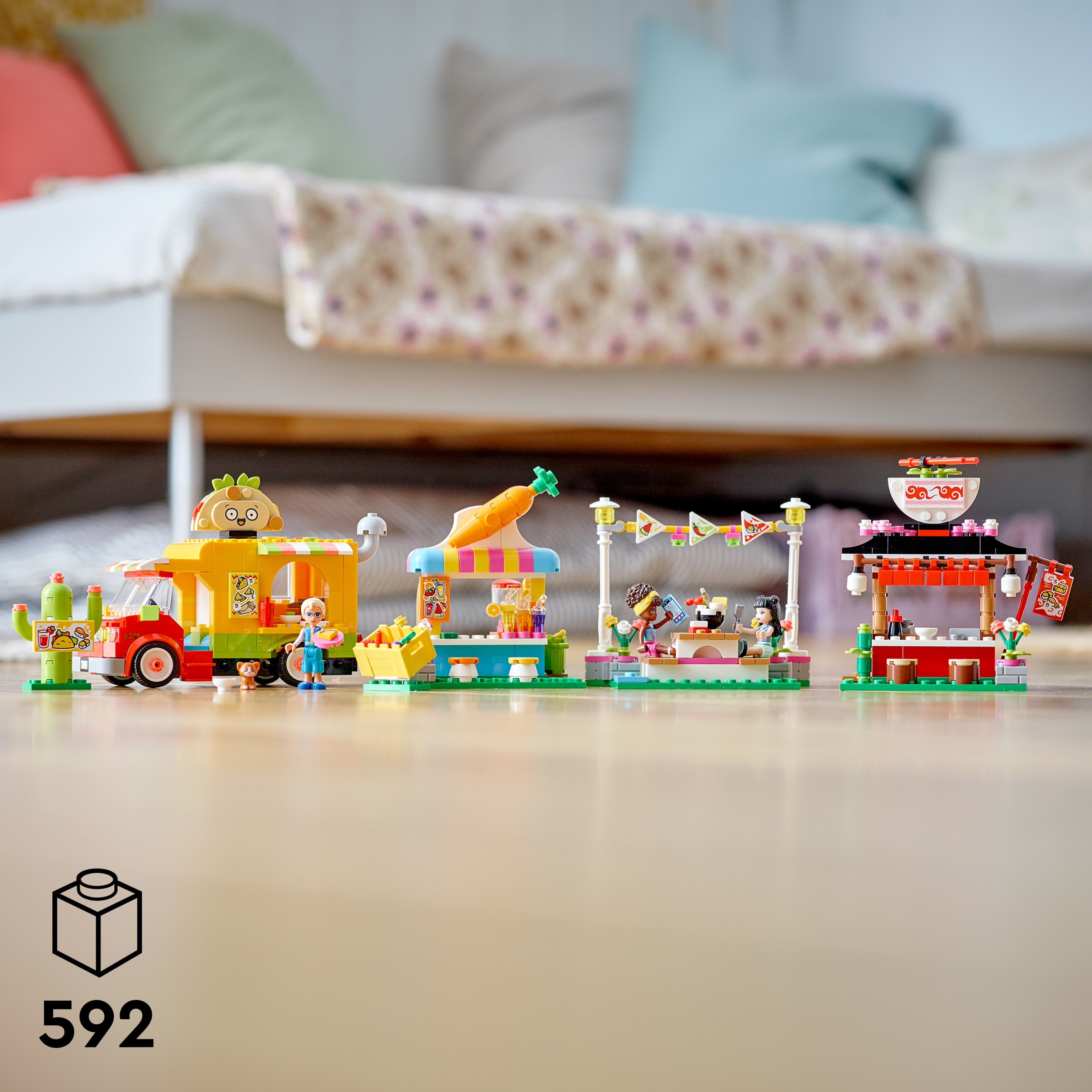 LEGO Friends Street Food Market 41701; New Food-Play Building Kit Promotes Imaginative Play; Includes Emma and Kitten Toy; Birthday Gift for Kids Aged 6+ (592 Pieces)