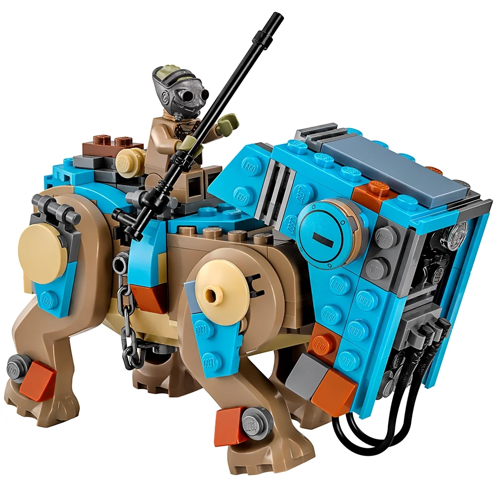 $64.49Recreate exciting scenes on desert-planet Jakku at Unkar Plutt?s market stall, where Resistance hero Rey is forced to ward off Teedo riding an armored Luggabeast as he tries to steal the BB-8 Astromech Droid. This cool multi-level market stall scene features tables, a safe and container with spare parts, hidden weapons, tarpaulin and various accessory elements. You can also fold the model out for easy play access. This set includes 3 minifigures plus a BB-8 Astromech Droid and a Luggabeast.