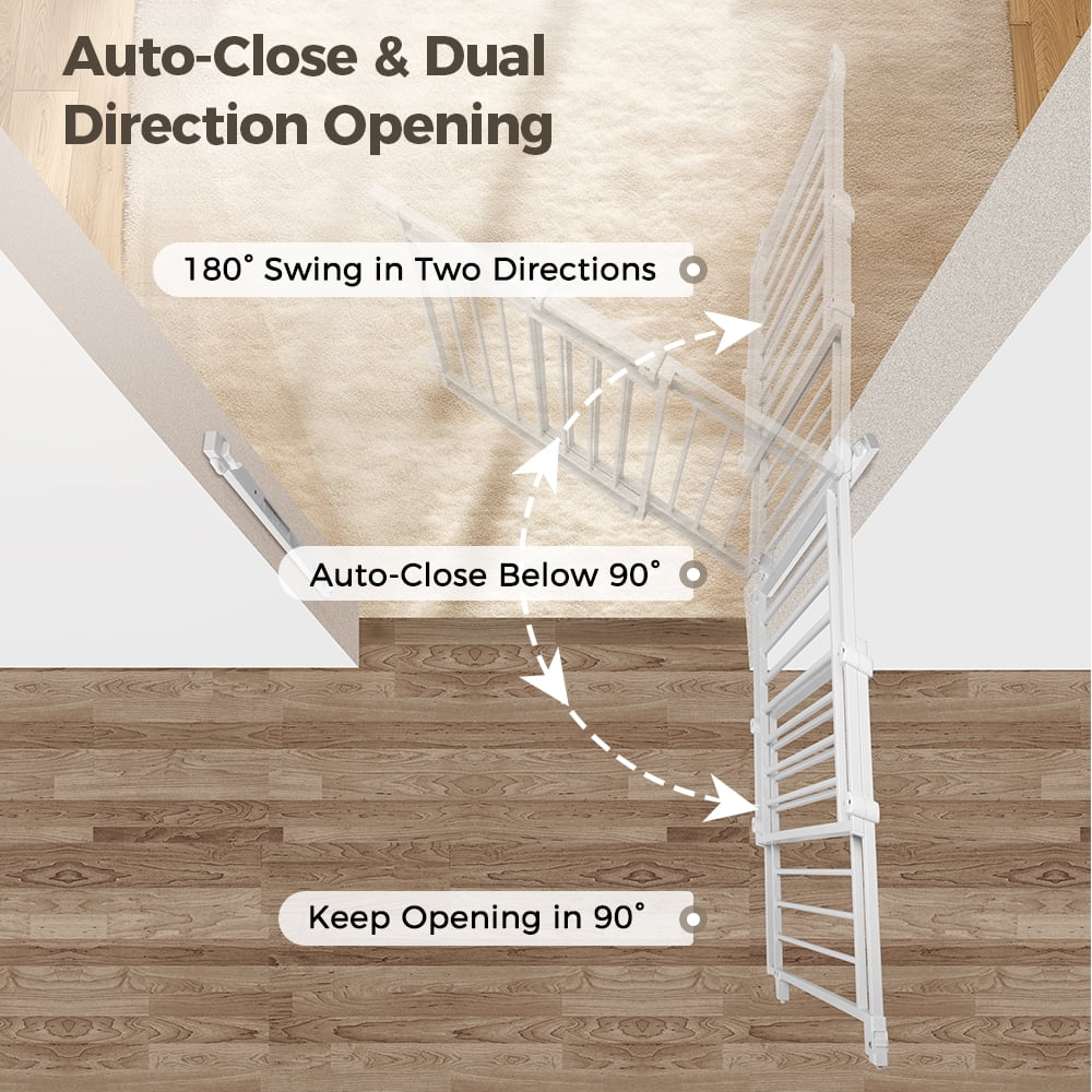 $60.19Original price was: $60.19.$34.37Current price is: $34.37.29.5-48.4” Safety Gate Extra Wide Walk Thru Baby Gate for House Stairs Doorways Hallways. Kid-safe Double Locking, Easy One-Hand Operation. More safety with a double-lock, difficult for your baby to open. Press the two buttons on the handle, then lift the gate to open. No need to worry about forgetting to lock the gate, since your gate will close itself up to 90°. (More than 90° will stay open.)The door can swing in both directions, allowing it to fit many more spaces.