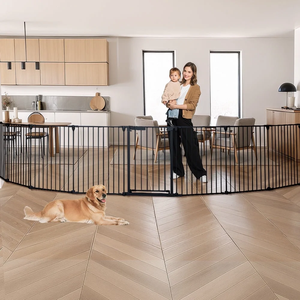 Baby Gates, Caveen 8Panel 198″ Extra Wide 30″ Tall Baby Gates Fireplace Fence Toddler Playard, Black