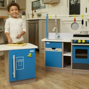 $68.79The Little Tikes Home Grown Kitchen combines a sleek, modern look with endless role play fun! The unique design of the Home Grown Kitchen lets it fit perfectly in the corner of your play room to create even more room for play! The 20+ accessories and recipe cards provide hours of role play fun. Features real cooking sounds, clicking knobs, doors that open and close, and plenty of built in storage for all the accessories included.