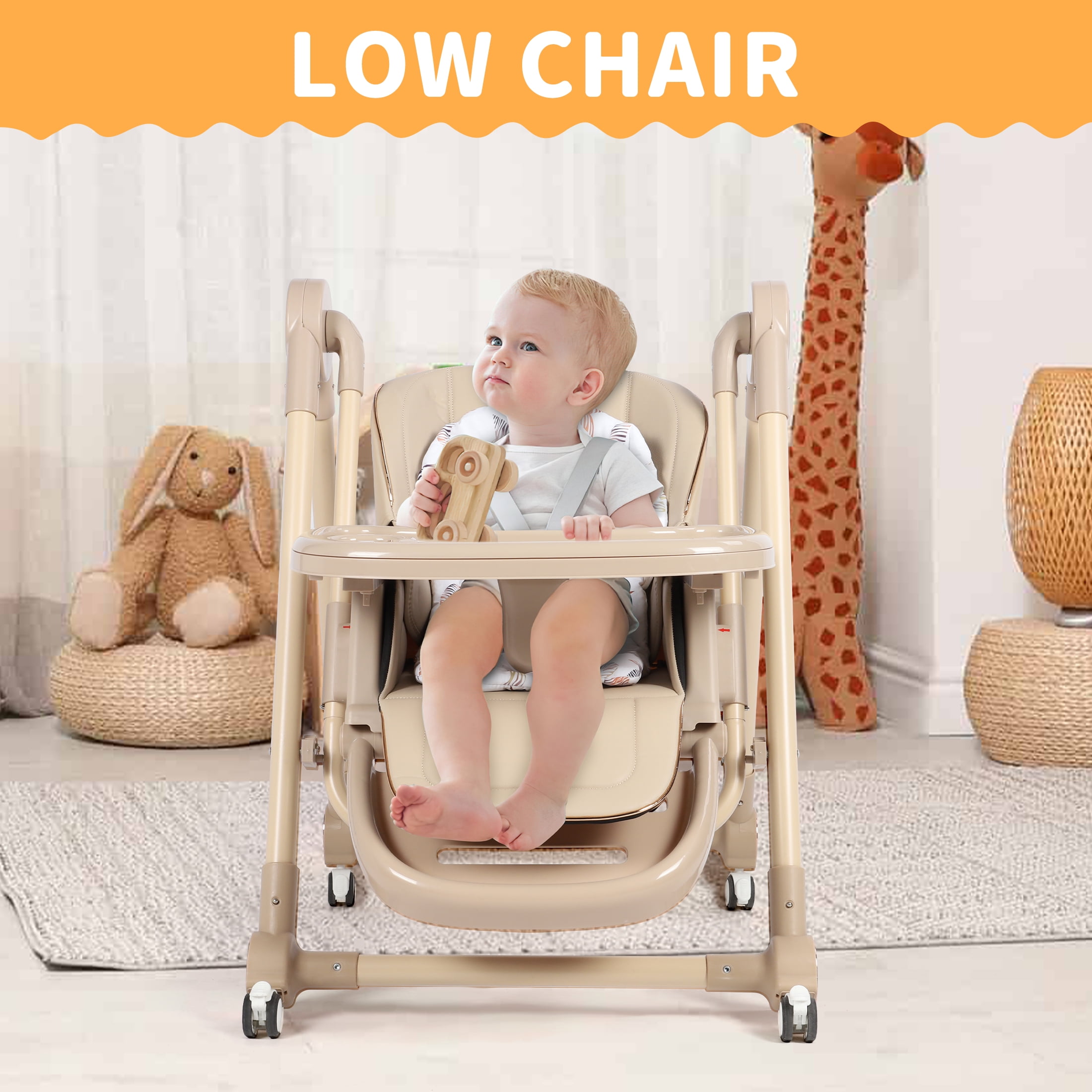 $85.99Loewten more products Loewten 4-in-1 Baby High Chair Please Click Loewten Baby Walker 3 in 1 Music and Lights Toddler Jumper Please Click This versatile 3-in-1 high chair feature solid value and smart design, adapt effortlessly to your child’s needs with its functions as a traditional high chair, baby swing and toddler booster seat. Suitable for ages 0 months to 3 years, which could ensure long-lasting use. It breeze with a removable and telescopic tray, a five-point safety harness, 6-level adjustable backrest, 5-level adjustable heights, 3 footrest positions and 4 removable 360 degree lockable wheels to ensure baby maximum comfort and safety. In addition, the booster chair can be effortlessly folded away with a single click to store and carry, could help free up valuable space at home or in the trunk, ideals for home and traveling! Specification: Product Dimensions: 29.9 x 22 x 37.79 inches Maximum weight recommendation: 170 Pounds Material Type: Metal Additional product features: Baby Swing, Four smooth wheels, Adjustable backrest, Adjustable height, Foldable Is portable: Yes Item Weight: 17.6 pounds Package include: 1* baby high chair Reminder: Be sure to use your product as directed. If not sure how to assemble and use properly, just contact our world-class, friendly customer service team for quick solutions.
