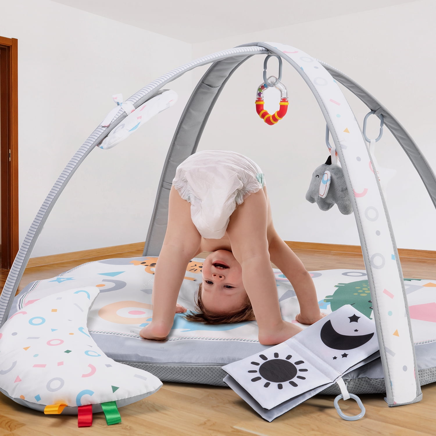Lupantte 9-in-1 Baby Activity Gym, Baby Learning Toys Play Gym Mat with 9 Toys for Infant, Baby Learn Mat, Shower Gift