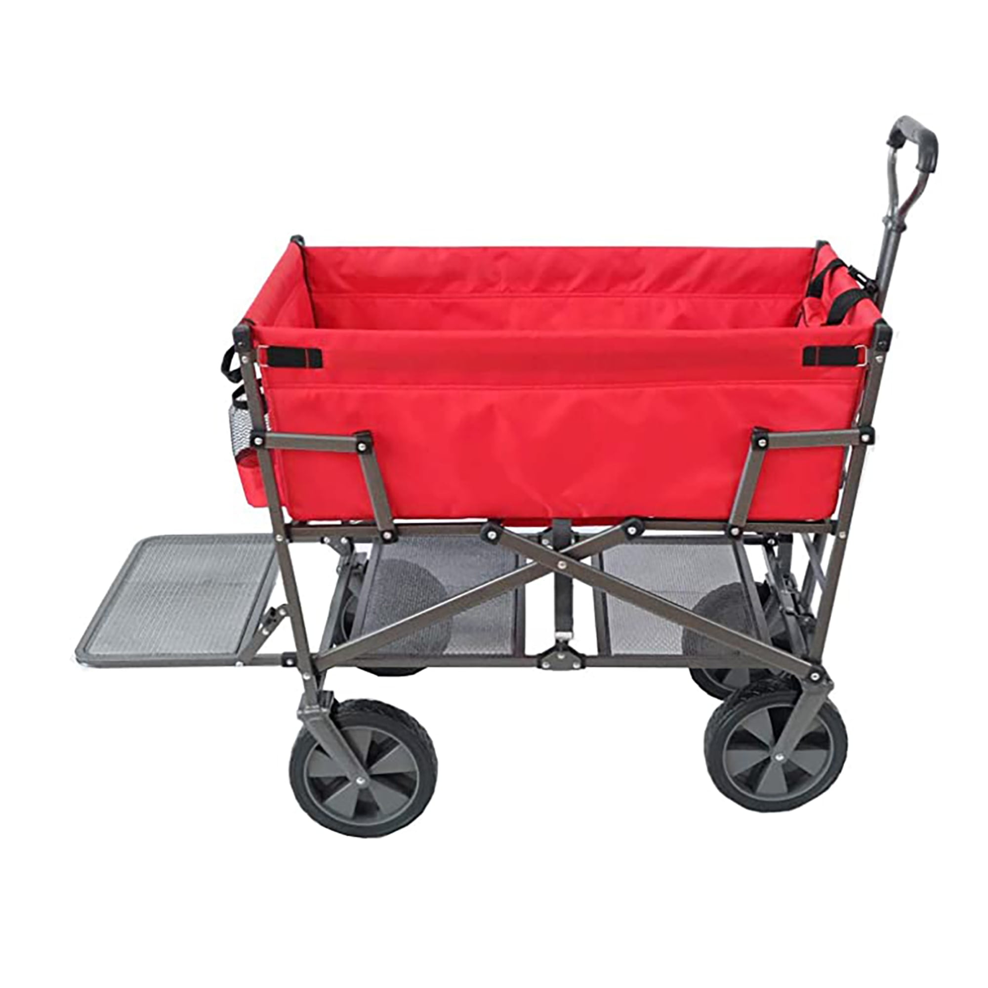 $128.99Mac Sports Double Decker Wagons – ROOMY INTERIOR: Large capacity folding wagon cart opens to 32.5″ L x 17.5″ W x 10.5″ H with even more storage using the 2-tier design for larger items and included wagon straps for security. BUILT WITH QUALITY: Heavy duty frame made from powder-coated steel paired with durable 600D Fabric and PVC materials make a heavy duty fold up wagon that won’t tear, is durable and waterproof. UNFOLD TWO-TIER WAGON IN SECONDS: Fold and store your foldable wagon cart in seconds and unfold without any hassle. Have it ready no matter where you are, groceries, beach trips, or camping. ALL-TERRAIN PORTABLE WAGON: Pushing and pulling has never been easier and more convenient with wheels built for any surface. Use it on grassy fields, forests, sandy beaches, and more without problem. LIGHTWEIGHT DURABLE DESIGN: Carry around and store your wagon cart with wheels foldable without any issue thanks to it’s 27.6lb weight and heavy-duty PVC clasps which lock the folding utility wagon. ALLOY STEEL FRAME.With its double utility tier level of cart storage, many people have found it to add extra value when loading items of different sizes and lengths. The top basket is great for carrying balls, sporting items, food, ice boxes and the like while the bottom shelf tier is best utilized for longer items like folded chairs, large tents and collapsible canopies.MACSPORTS® ADVENTURE READY – At MACSPORTS® we believe life is a journey and that some of it should be spent outdoors. Let us help you enjoy those moments with equipment that you can trust and rely on. BUILT TOUGH – We boast high-quality fabric and steel that will endure for many years. They’re flexible, compact and mobile, easy to use, and comfortable equipment that will enhance your outdoor experience.