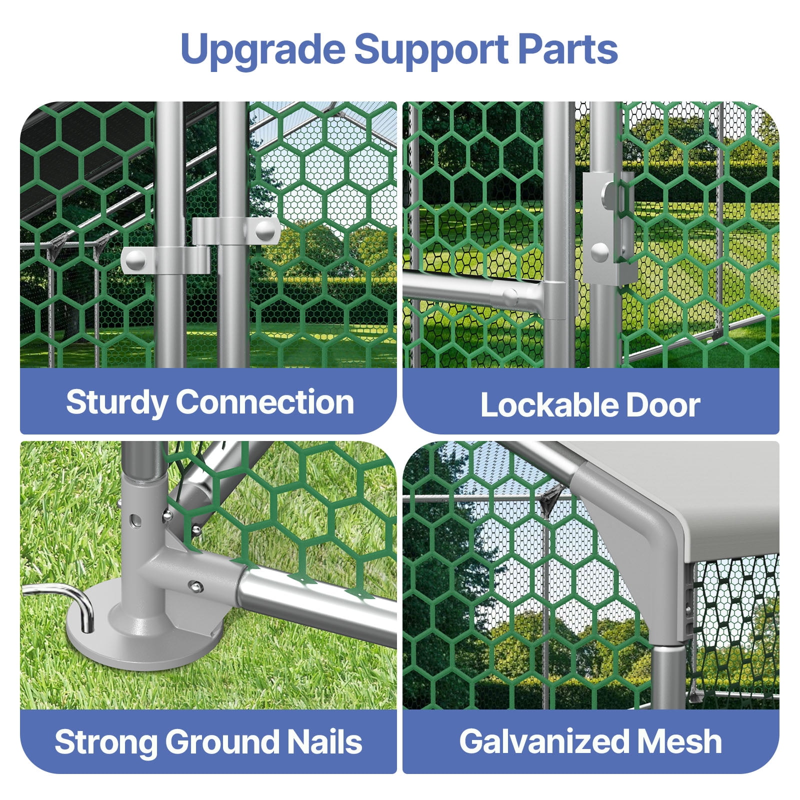 Luxvie Large Chicken Coop Metal Outdoor Chicken Run, Chicken Pen with Water-Resident and Anti-UV Cover Spire Shaped Coop Duck Rabbit House, 9.8’Lx6.6’Wx6.6’H