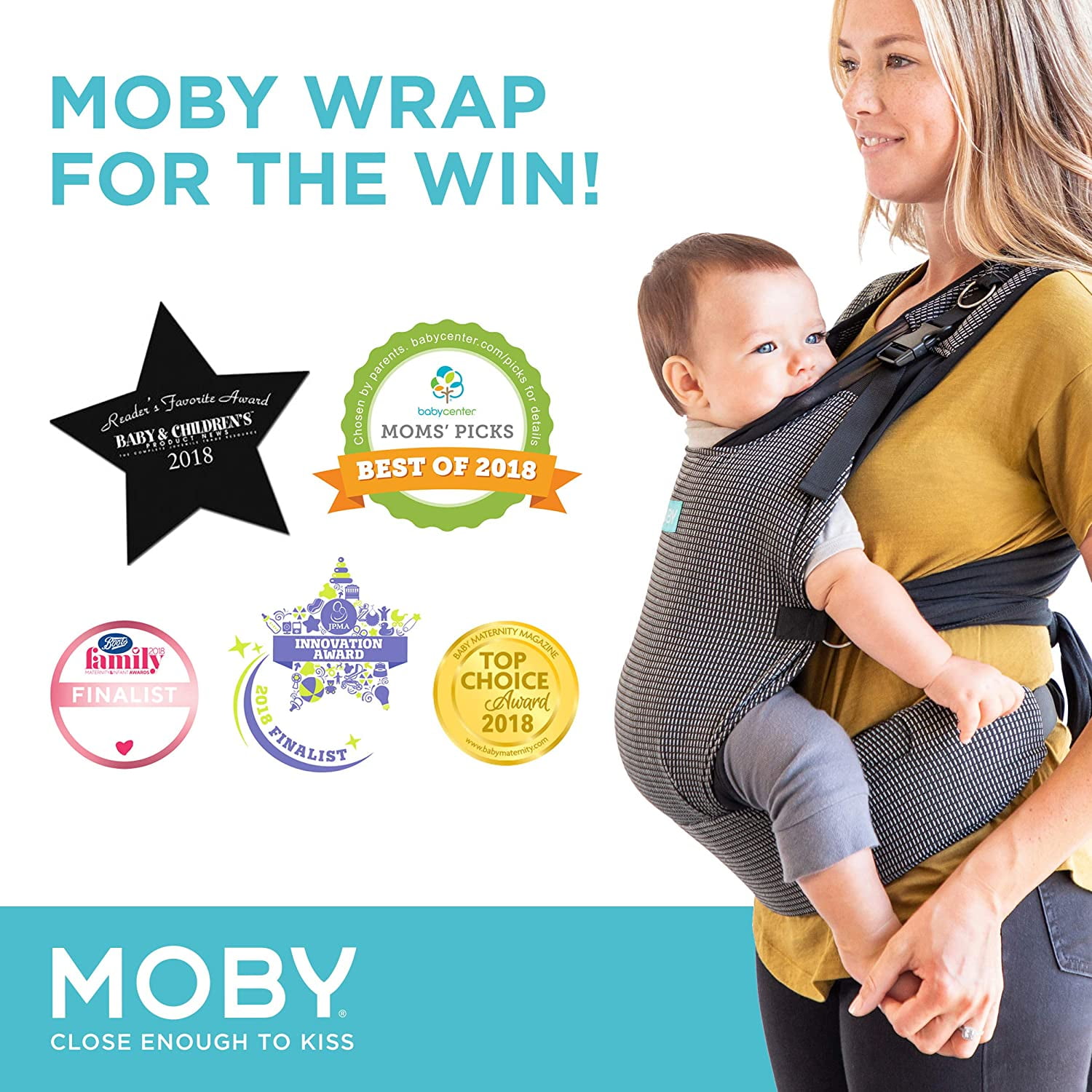 $42.99Perfect for newborns, the close cuddle will help you bond your little one – even when you’re on-the-go. It offers an easy-to-use, hands-free way to evenly distribute baby’s weight across your back and hips, making for a comfortable carry and hassle-free adventures. Plus, it will grow with your child until they reach 33 pounds, allowing you to change carrying positions once your little one has grown and gained some head control. It’s made from a soft, breathable, blended fabric, and comes in fashionable solids and trendy prints, making it the perfect, one-size-fits-all solution for any parent or caregiver. MOBY Close Enough to Kiss®