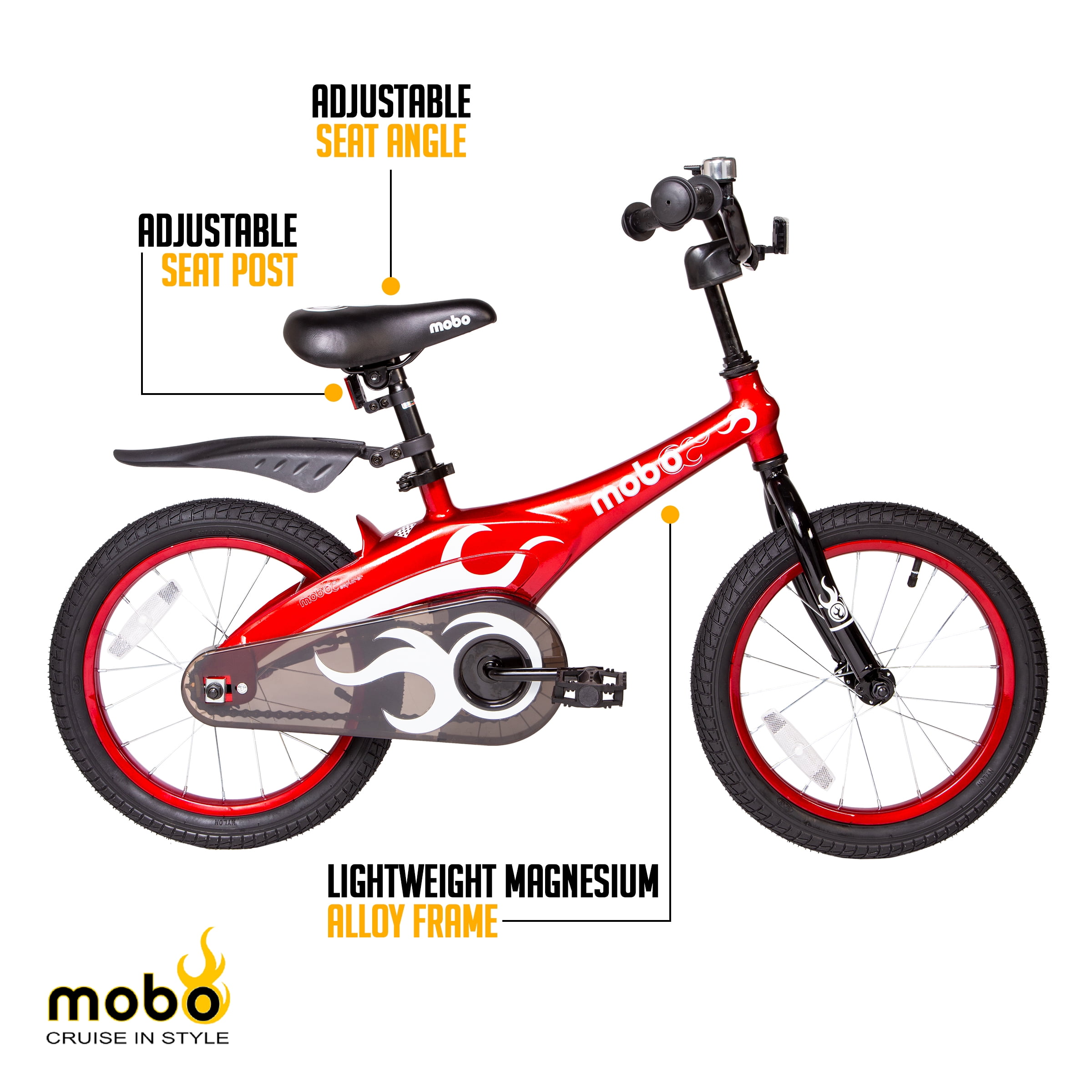$120.39If you’re looking to give your child the coolest bike on the block, our Mobo Lite Bike For Kids are some of the best bikes for 5, 6, 7 and 8 year olds! Not only are they stylish, but they’re also engineered with a state-of-the-art magnesium alloy frame that allows for a lightweight design and sporty look. Our Mobo Lite kids’ bike is complete with training wheels to allow your child to stay balanced as well as coaster brakes for easy stopping. With all these great features, you can have peace of mind that your kid is equipped with a safe, comfortable bike while also sporting the trendiest look. Riding a bike is the perfect outdoor activity for daily exercise and a dose of fun, so give your child the ride of a lifetime!