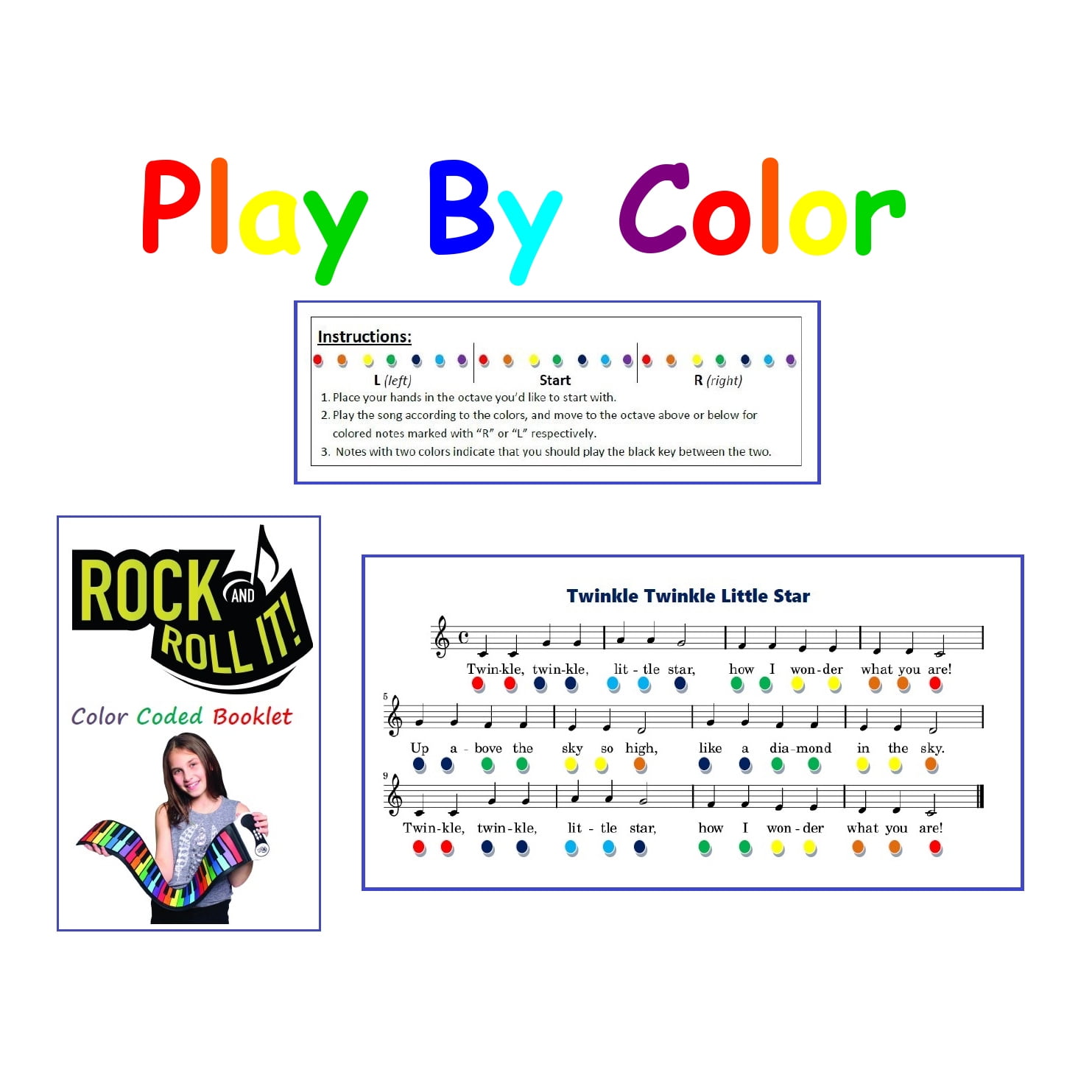 MukikiM Rock and Roll It – Rainbow Piano. Roll Up Flexible Piano Keyboard for Children. Portable Piano Pad. Play-by-Color Songbook Included!