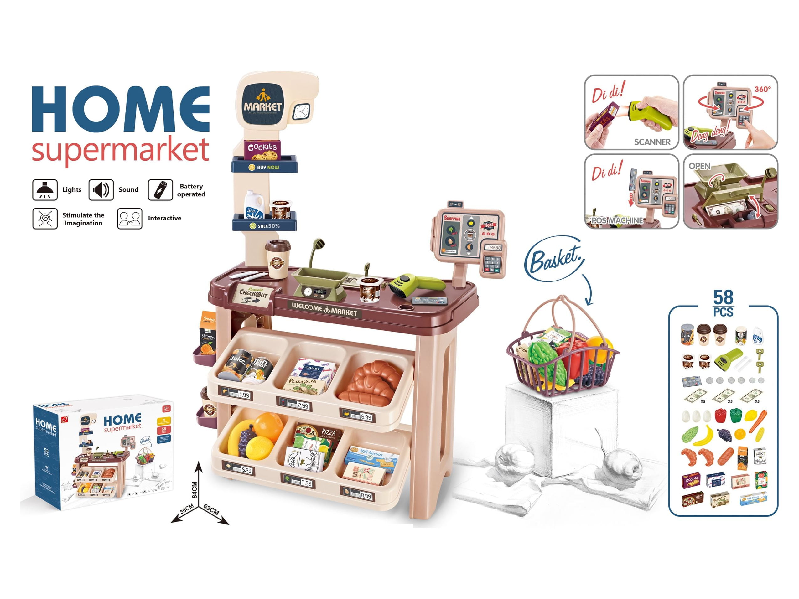 Mundo Toys 58PCS Supermarket Playset with Shopping Cart, Cash Register, Scanner – Multipack