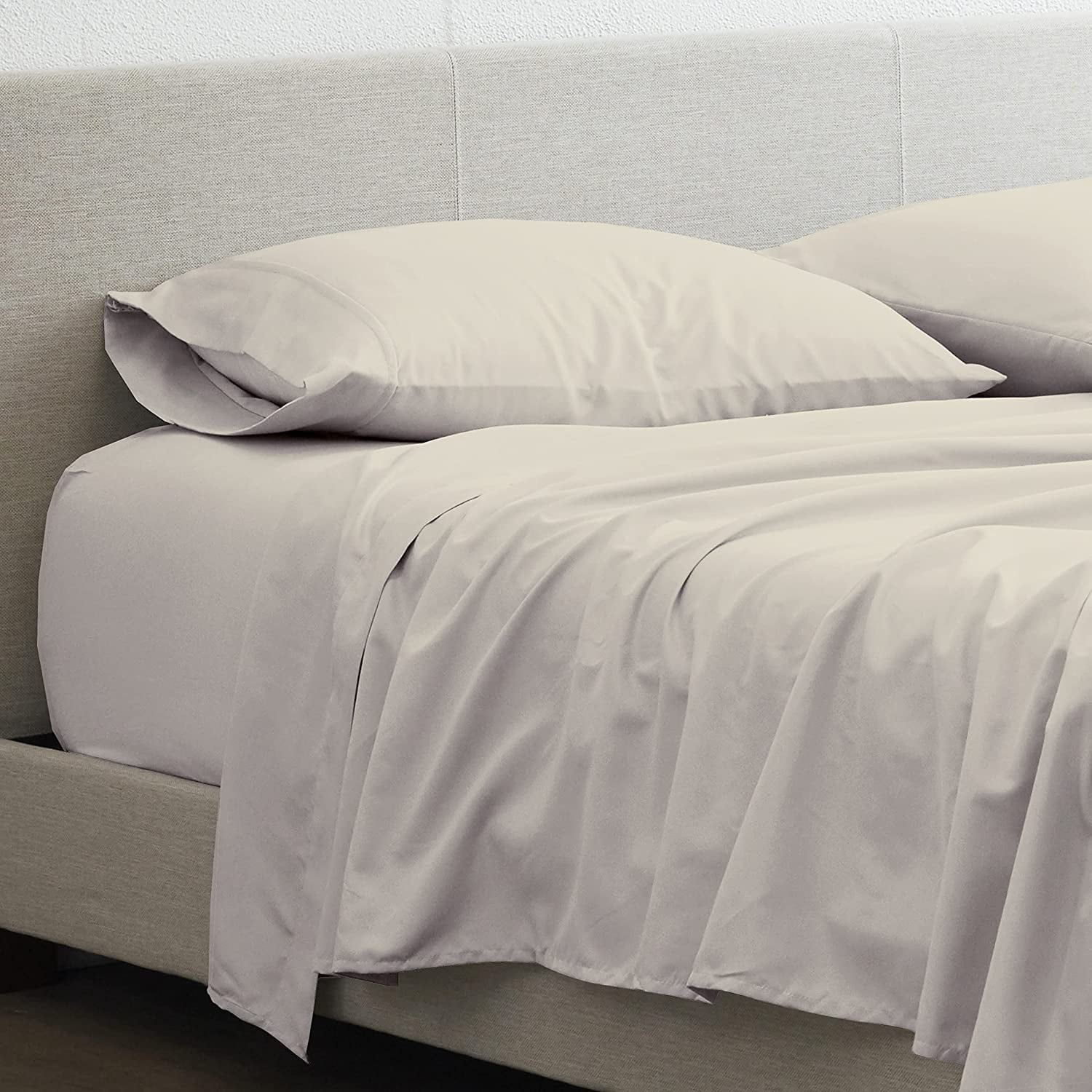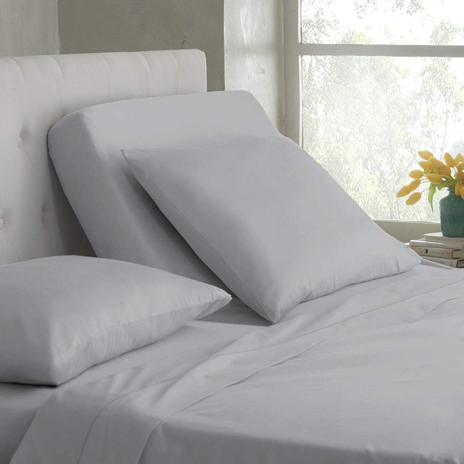 MyGiza Sheets Top Split King Sheets Sets for Adjustable beds- 34″ Split Top King- 100% Giza Cotton- Light Grey Solid
