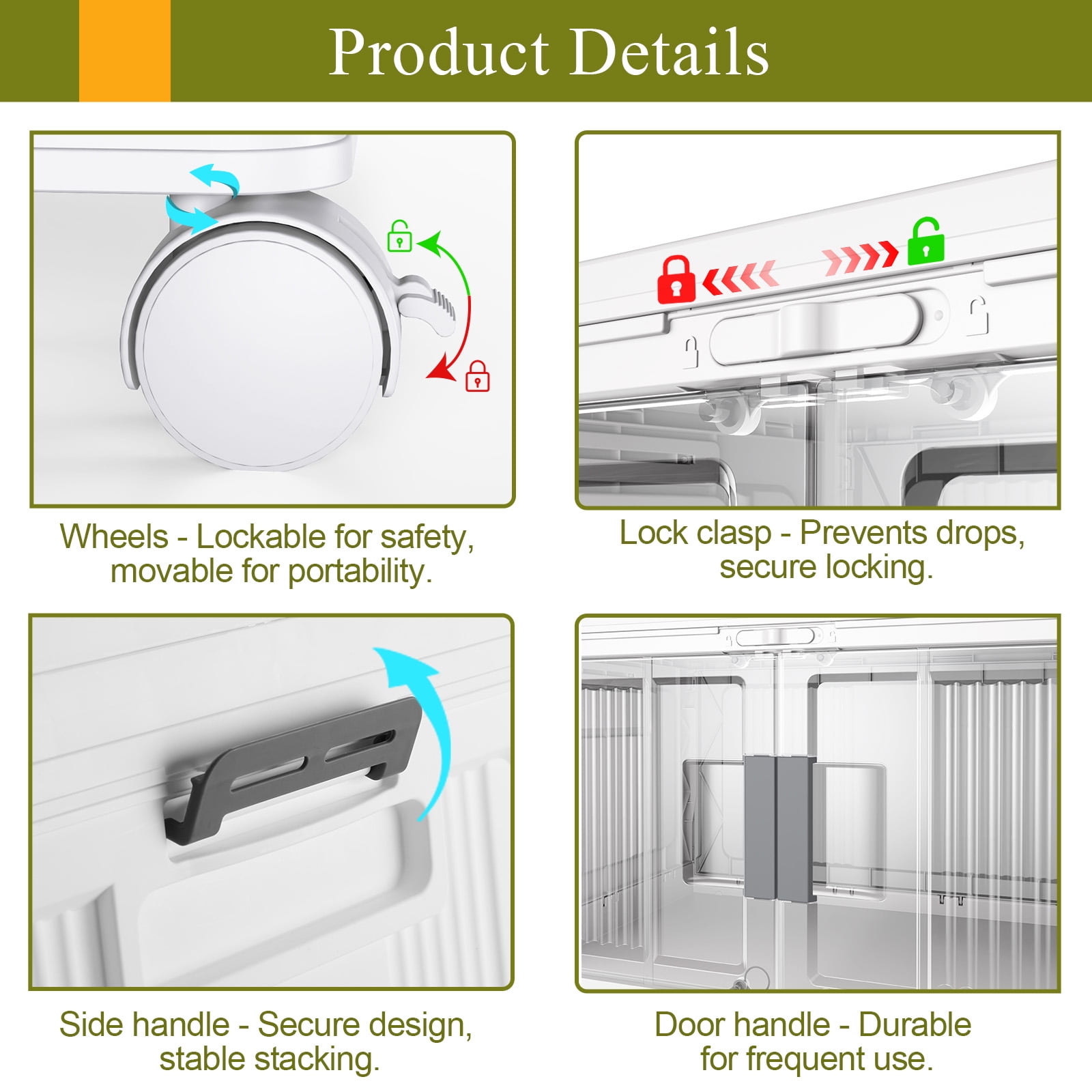 Ophanie 144QT Collapsible Wheeled Stackable Plastic Storage Bins with Lid and Doors, Large Closet Organizers and Containers, Plastic Totes With Lids For Storage, 3-Pack, White