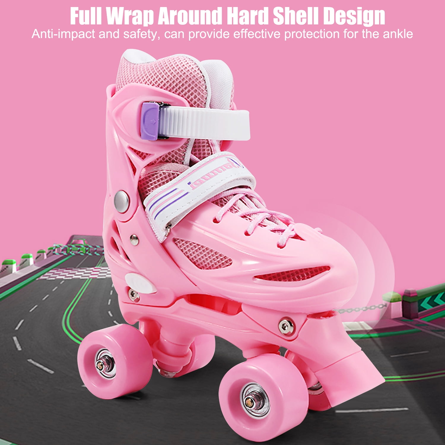 $36.11The Otufan Combination Roller Skates offer a 2-in-1 design, allowing you to switch between inline skates and quad roller skates with ease. The adjustable size feature accommodates different foot sizes and ages, ensuring a perfect fit. With a triple protection system, including a secure buckle, magic tape, and reinforced laces, these skates provide reliable and secure protection for children. The sturdy triangle frame enhances stability, while the high-quality PU wheels offer durability, noise reduction, shock absorption, and anti-slip protection. Designed for comfort and safety, these skates feature a shock-absorbing shell, soft protective layer, and breathable fabric, ensuring maximum protection and a comfortable wearing experience for children. Size Chart XS: Inner length of shoe: 6.69-7.48in, suitable for boys or girls aged 3-7 years old S: Inner length of shoe: 7.48-8.26in, suitable for boys or girls aged 6-12 M: Inner length of shoe: 8.26-9.05in, suitable for 10-13 years old and adult boys or girls