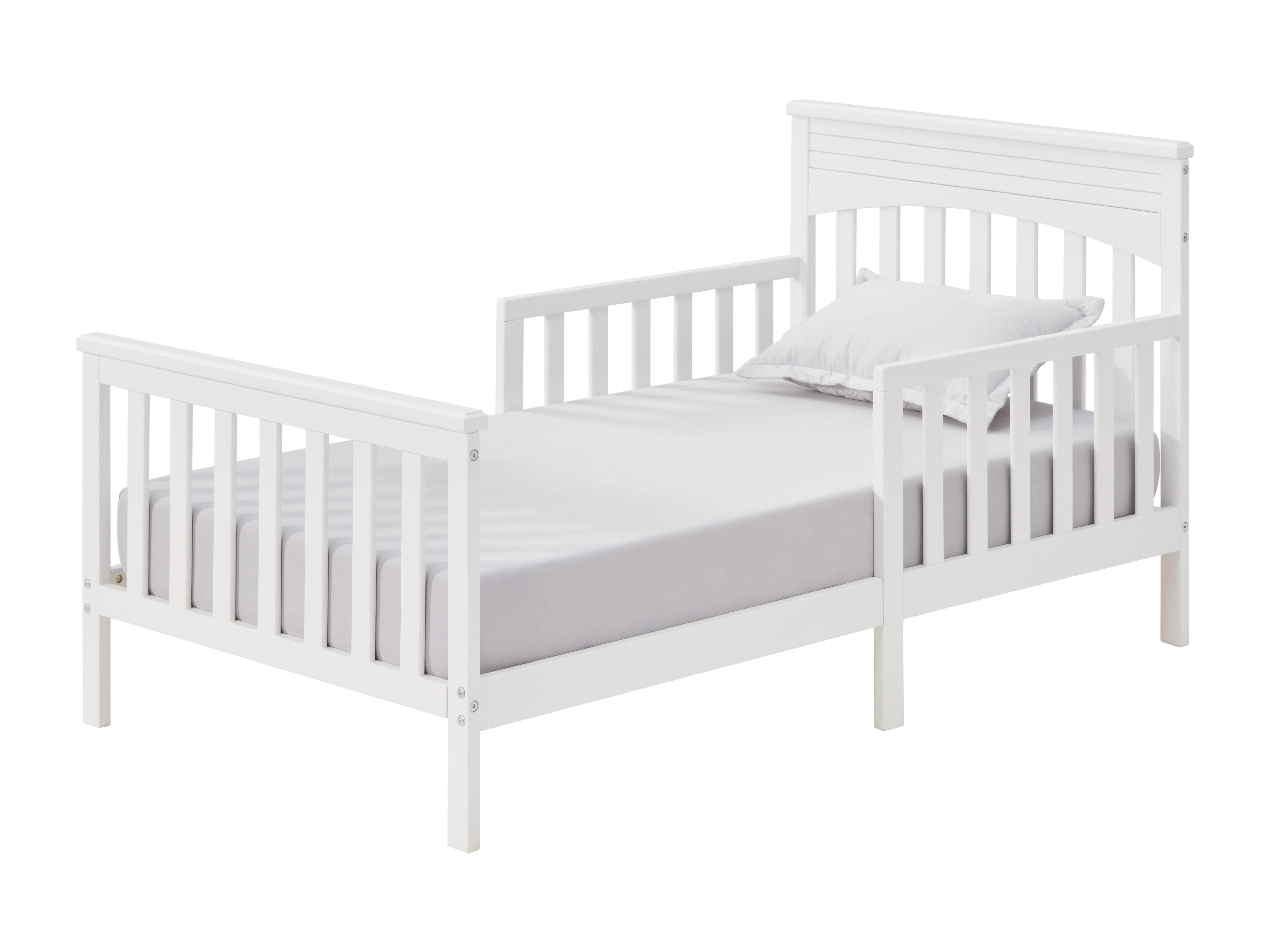 Help make the transition from crib to toddler bed easy with the Oxford Baby Lazio Wooden Toddler Bed. Featuring clean lines with a smooth, low-profile headboard and two guardrails for safety, the low to the ground design allows your toddler to get in and out of bed easily. The easy to assemble Lazio Toddler Bed is designed to fit most standard full-size crib and toddler mattresses, mattresses sold separately.