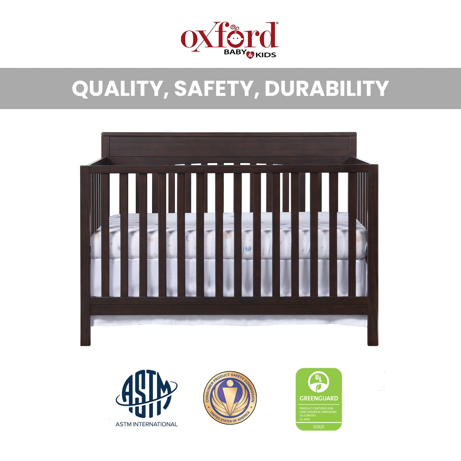 Oxford Baby Harper 4-in-1 Convertible Crib, Espresso Brown, GREENGUARD Gold Certified, Wooden Crib