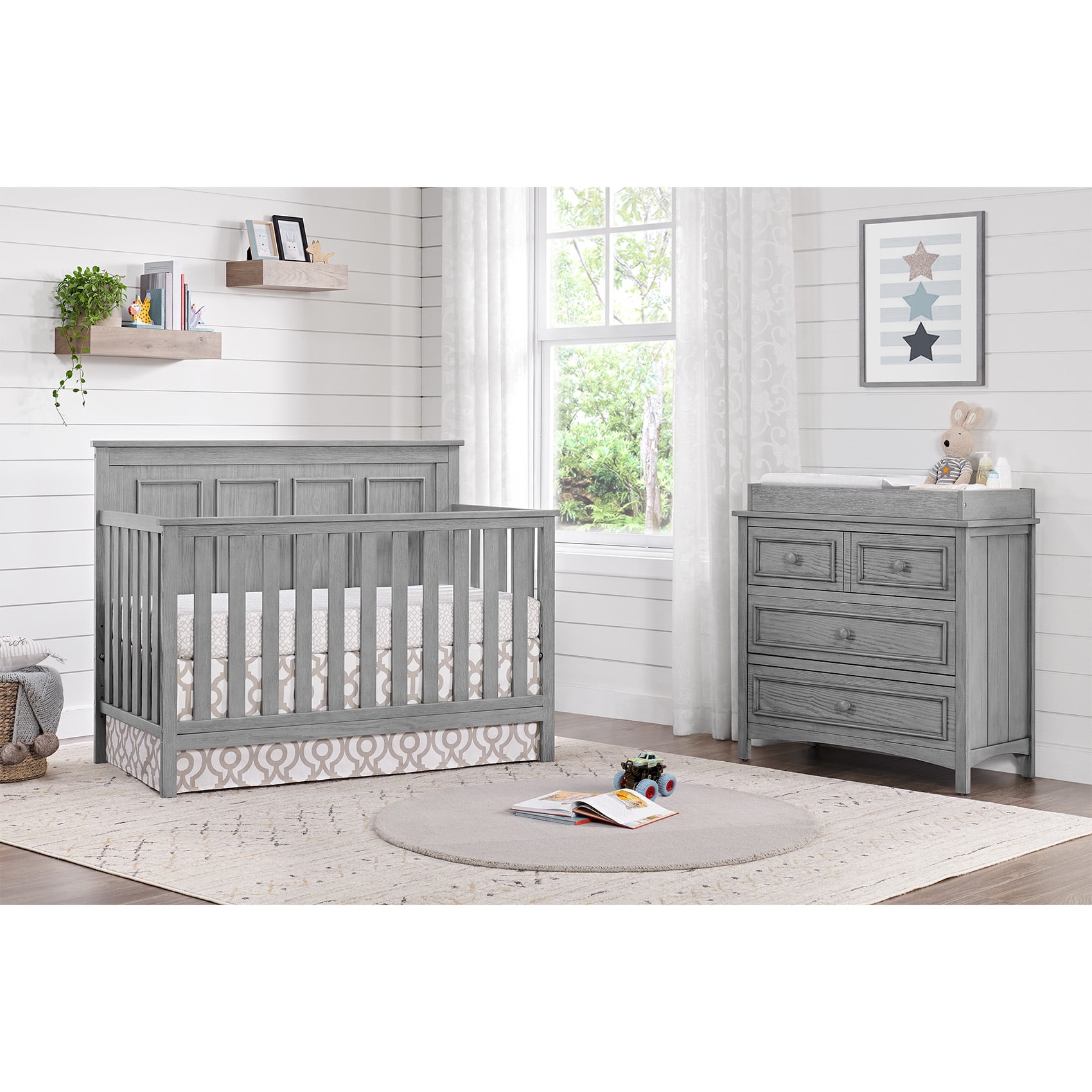 $238.98The Emerson Collection speaks tradition and style while maintaining the highest quality and safety standards in the industry. The furniture is constructed from the finest solid woods and veneers which help capture its beautiful design. Our innovative 4-in 1-design of the Emerson Convertible Crib has a beautiful full panel headboard. The Emerson Crib is sturdy and easily converts the Crib to a Toddler Bed, to a Daybed and then to a Full Size Bed. Toddler Guard Rail and the full-size bed Conversion Kit are sold separately. Designed with your baby’s safety in mind, the crib meets all safety guidelines. The mattress is not included. The Emerson Collection by Oxford Baby features: 4-in-1 Convertible Crib, Changing Station & Changing Pad, Toddler Bed Guard Rail, and Full Bed Conversion Kit. All collection pieces are sold individually. The Emerson Collection is available in two finishes: Dove Gray and Snow White.