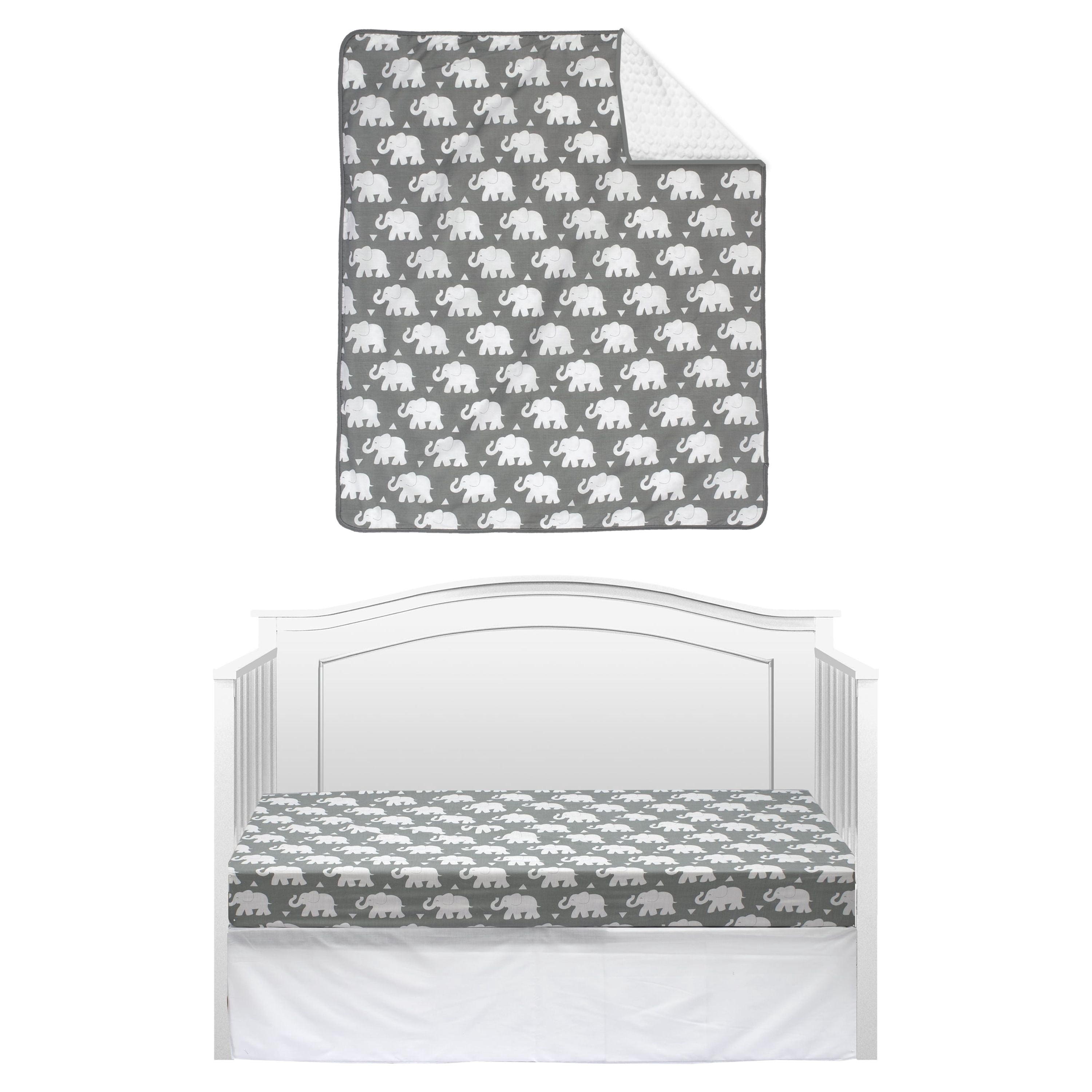 $61.45Let these Indie Elephants lead your little one off to dreamland with our Pam Grace Creations Indie Elephant Crib Bedding Set. Sweet, charming elephants in soft white stand out across a background of rich gray. Our 3-piece Indie Elephant Crib Bedding Set comes with Reversible Chenille Dot Blanket, Crib Sheet and Crib Skirt. Other matching items available to complete your Indie Elephant Nursery set include Reversible Chenille Dot Blanket, Boppy Cover, Changing Pad Cover and Lamp Shade. All Pam Grace Creations Bedding Sets are made with reversible, coordinating pieces for an easy and fun update of your nursery. Constructed with a soft, comfortable cotton/poly blend, our sets freshen up quickly with a simple machine wash. and dry Pam Grace Creations Indie Elephant Baby Bedding is available in 3 and 6 piece sets.