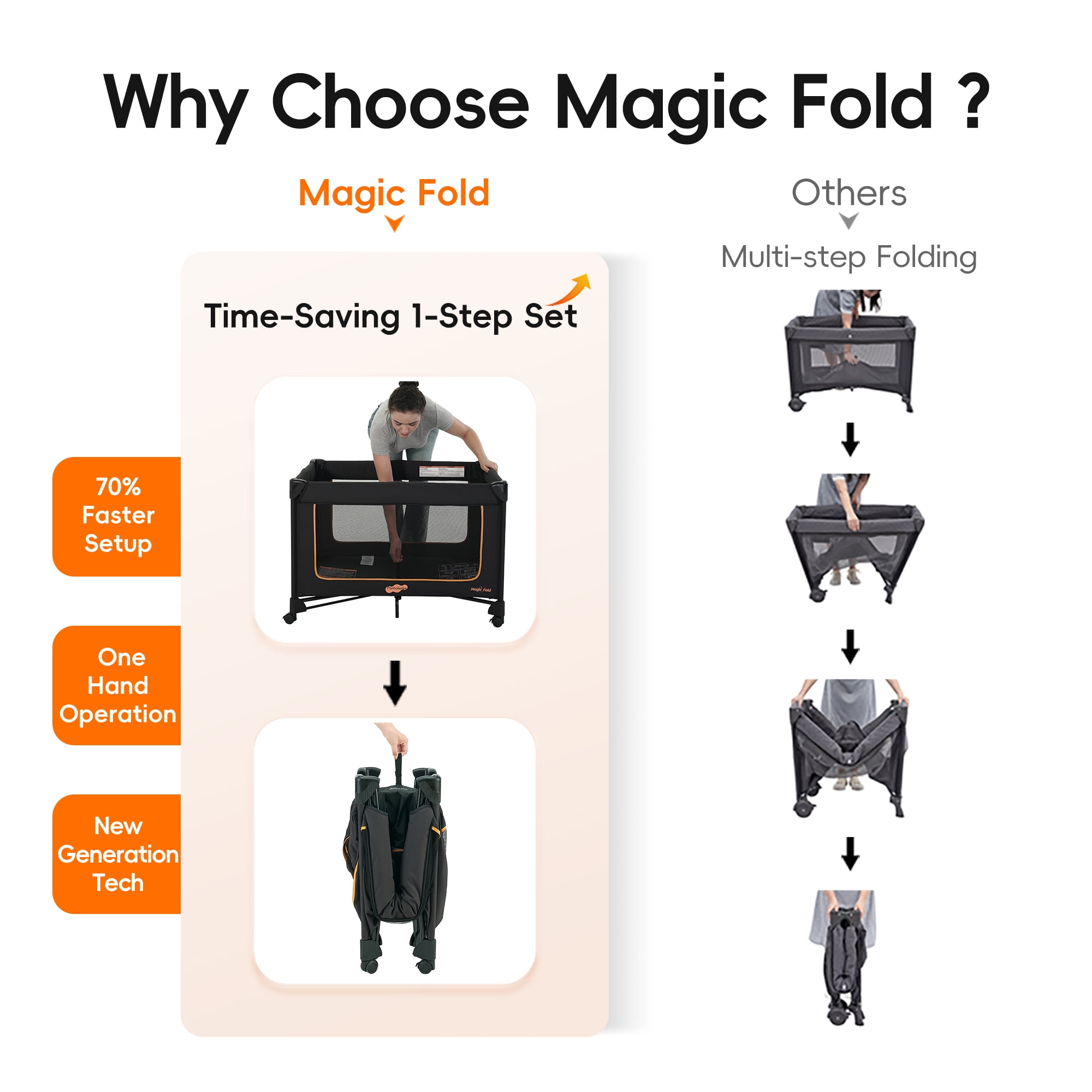 Pamo Babe Baby Playard Magic Fold 1 Step Bassinet & Changing Table for Newborn, 4-Panels (Black)