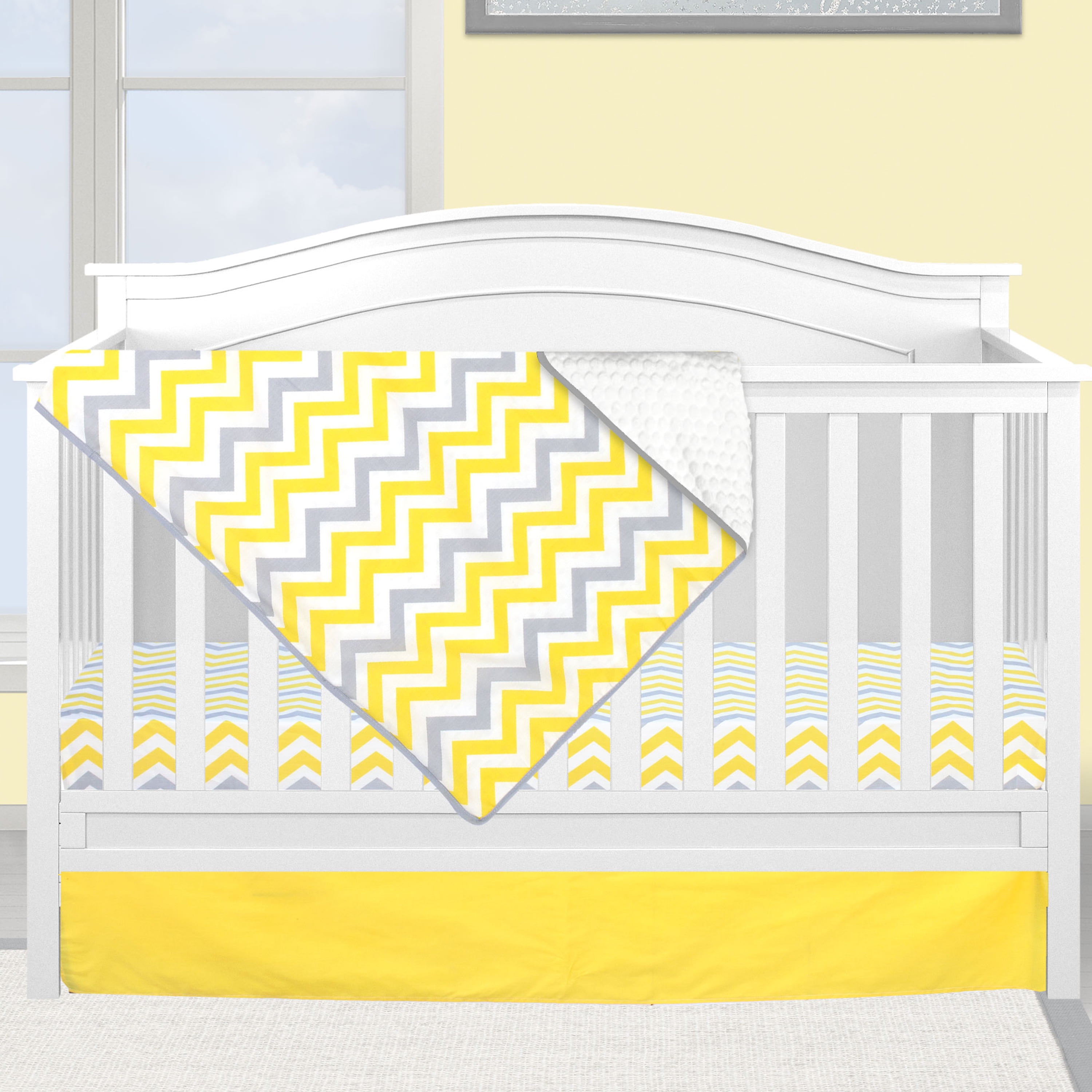 Pam Grace Creations Yellow and Gray Chevron 3 Piece Crib Bedding Set