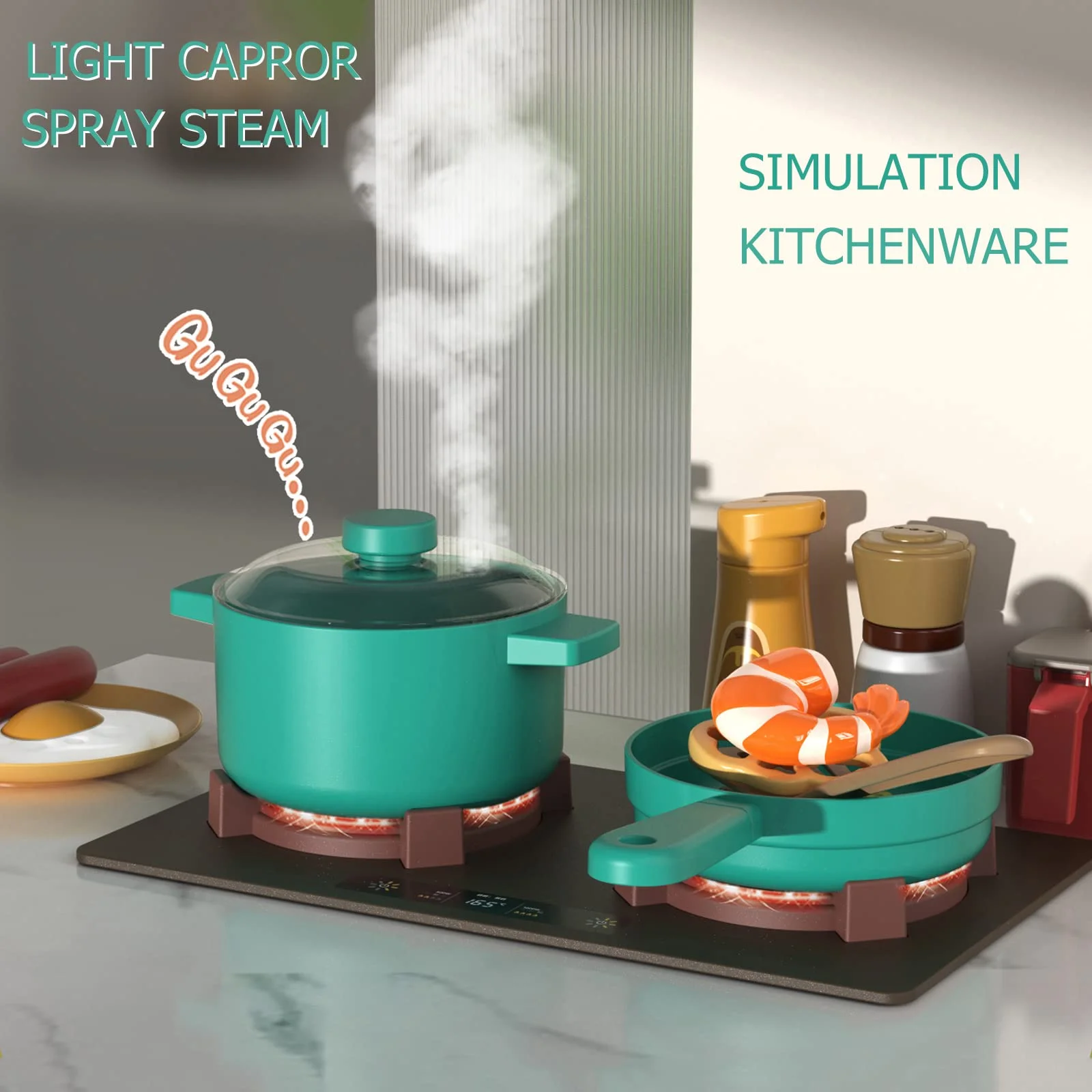 PayUSD Play Kitchen Playset Toy for Toddler 2.3Ft Tall Toy Accessories 3-7 Age Toddler Set with Real Water Spray Sounds and Lights Girls & Boys Gift