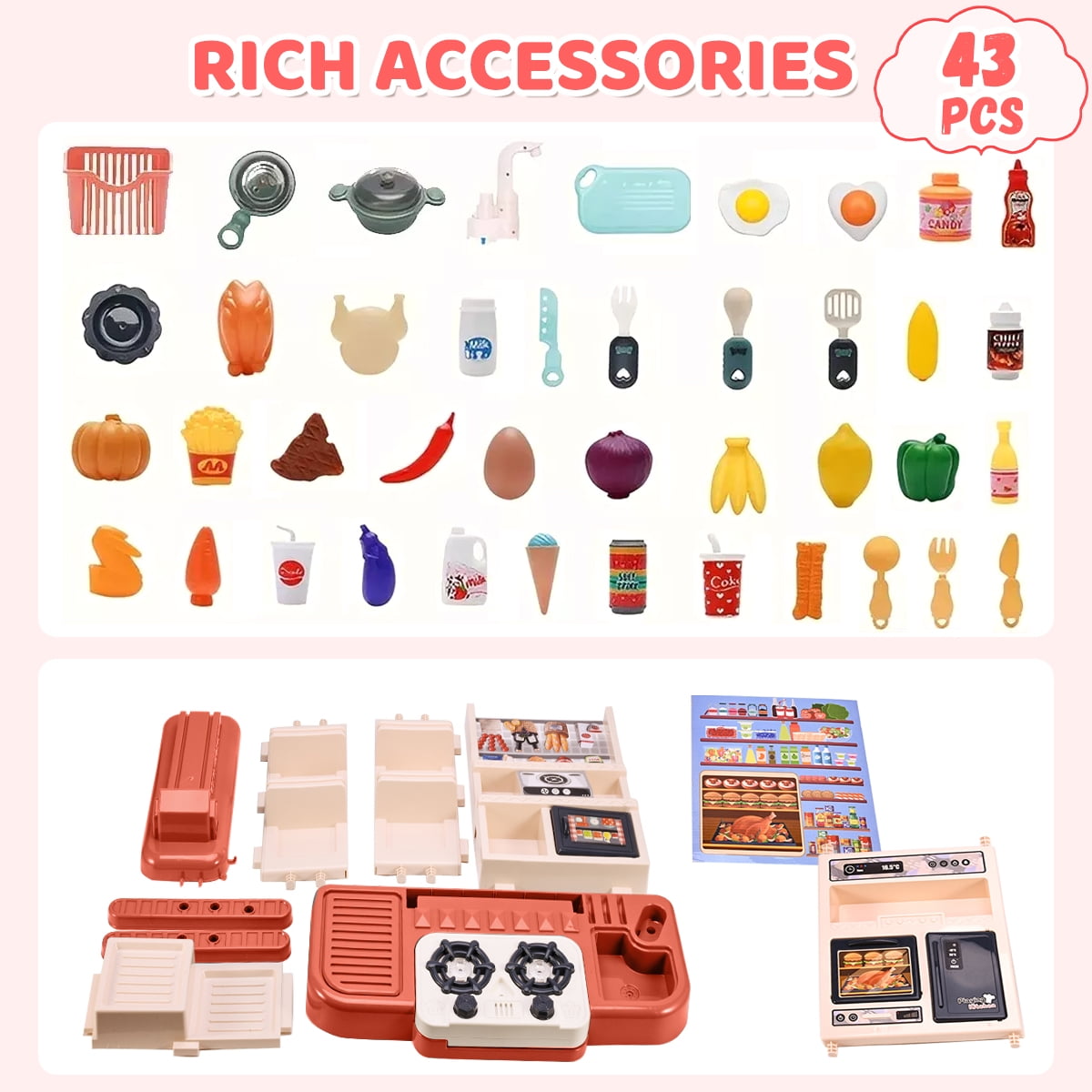 $25.79Original price was: $25.79.$23.21Current price is: $23.21.🍟PayUSD toddler kitchen playset will be the perfect and ultimate kitchen toy for your kids. This kitchen for kids is designed to inspire imaginative play and curiosity, providing endless hours of entertainment. This 29 inch tall play kitchen is a perfect fit for toddlers aged 3-8, providing a realistic kitchen experience without the hazards of a real kitchen. The toddler kitchen set includes a comprehensive set of 43 pieces of rich toy accessories, including pretend food and kitchen accessories, making it a complete kitchen set for kids ages 3-5. 🍳The PayUSD pretend kitchen playset stands out from other kitchen set toy with its unique features. Our toddler play kitchen is more than just a toy kitchen; it’s a tool to inspire creativity, imagination, and practical life skills. Cooking in the play kitchen set will produce smoke and spray steam, imitating real-life cooking scenarios. The toy kitchen sets also simulate cooking sounds, enhancing the pretend play experience and fostering your child’s sensory development. 🍿The kitchen play set kids will love includes a play sink, mini kitchen accessories, and a variety of play food sets for kids kitchen. The play kitchen food and accessories are perfect for role play, allowing your kids to pretend to cook meals, wash dishes, and more. The kids kitchen toys are designed to be safe and durable, making them an excellent addition to any kids play kitchen sets. The kids kitchen set will provide your child with a fun and educational playtime experience. Encourage kids cooking, pretend play, and role play with this comprehensive kitchen set kids.