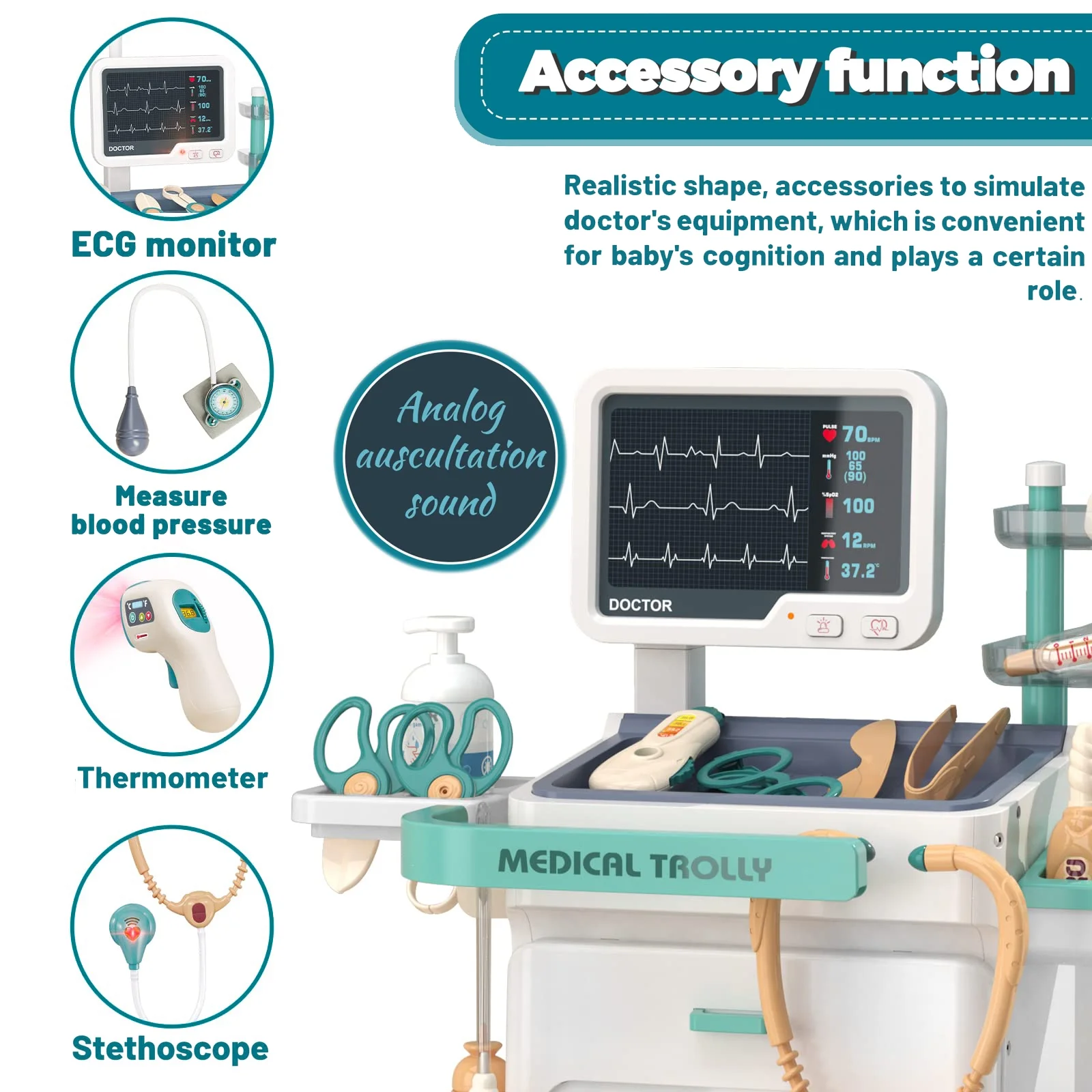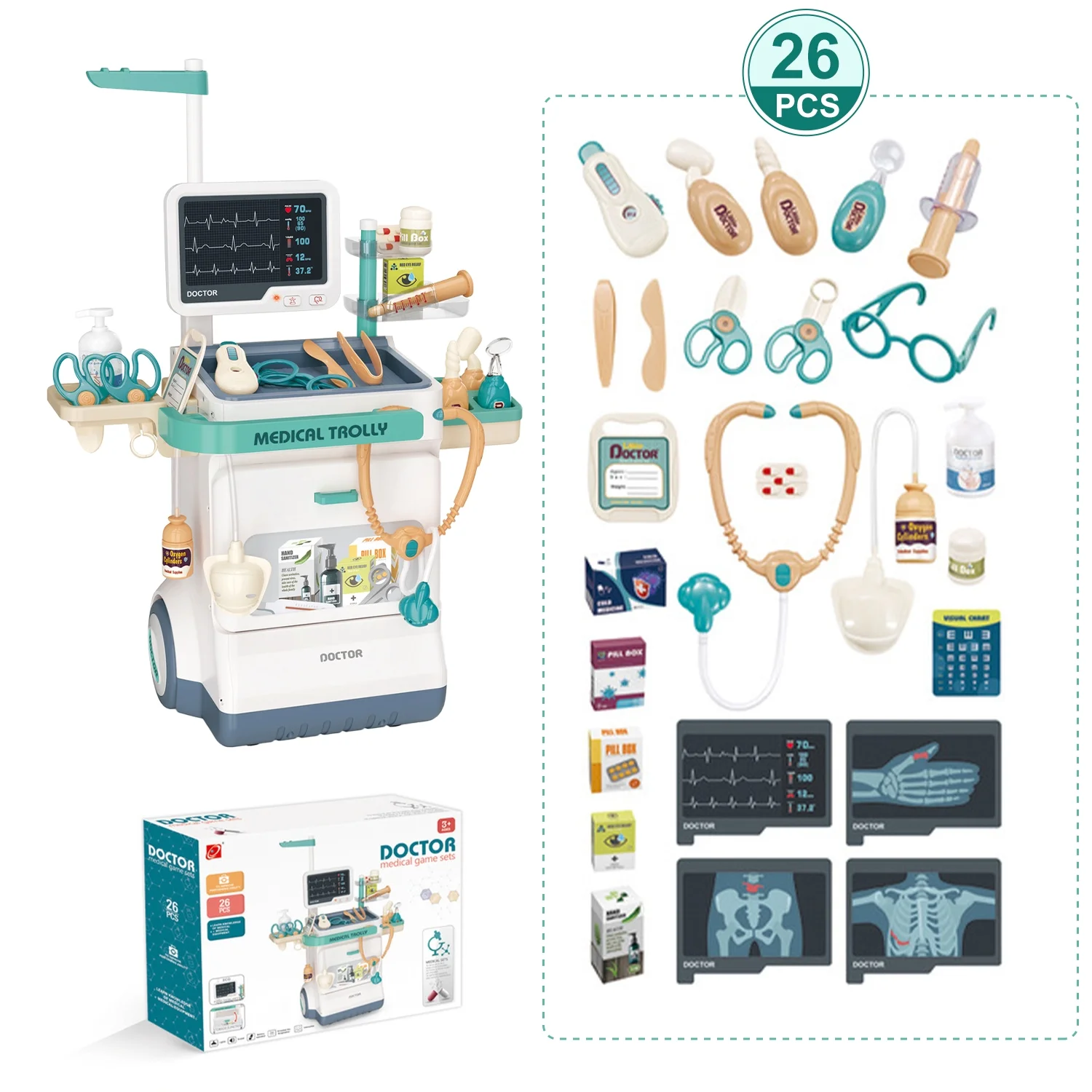 PayUSD Doctor Kit for Kids Doctor Set Pretend Play Medical Kit Station Set for Girls Boys Dr. Playset Role Play Mobile Cart Trolley for Toddler Toys Christmas Gift, 26 PCS