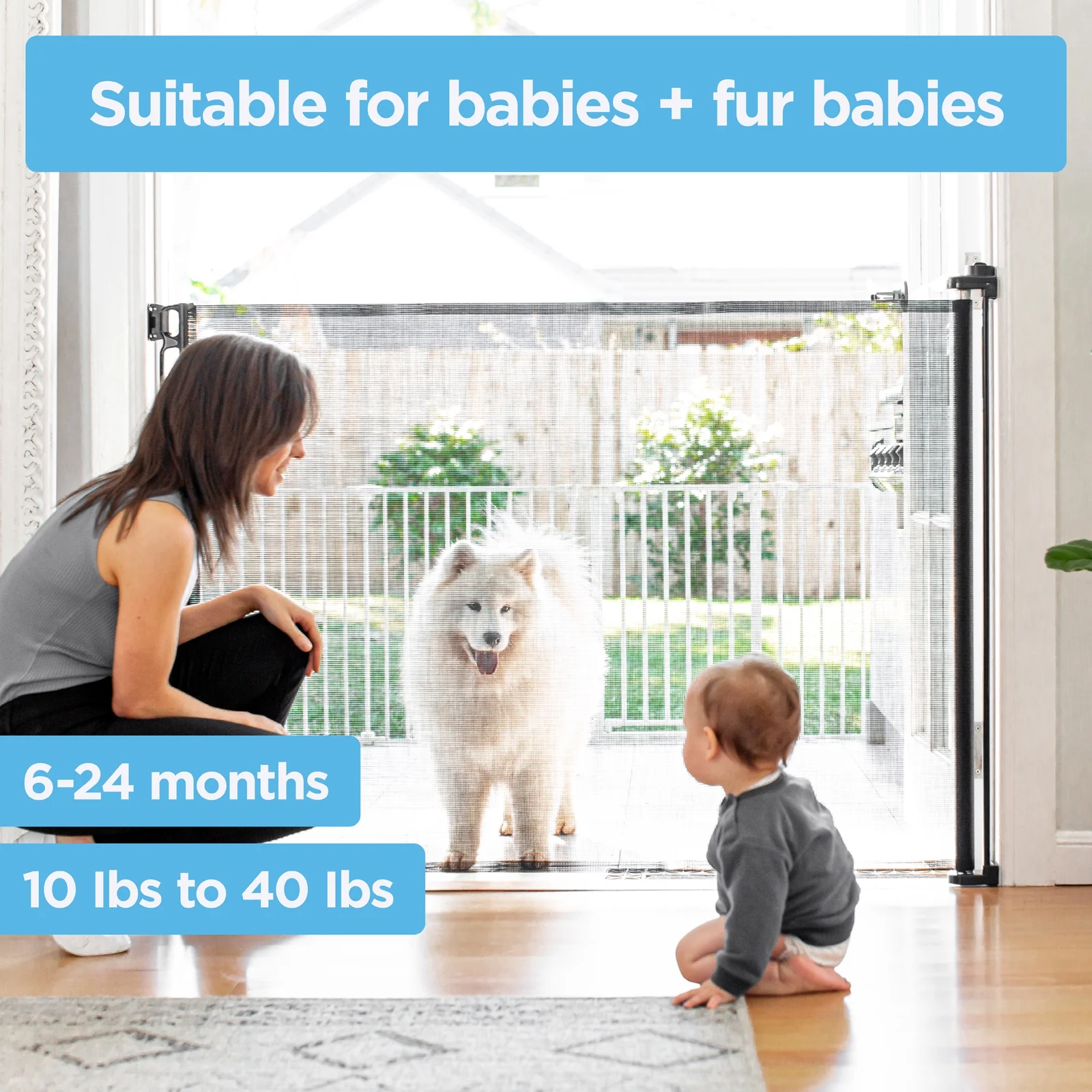 $42.93Original price was: $42.93.$34.29Current price is: $34.29.Perma Child Safety provides safety solutions for the next generation. Once your baby starts crawling, an entire world opens around your home and a strategically placed safety gate can make all the difference. At Perma Child Safety, we pride ourselves on providing the best creative, functional, and technologically advanced child safety equipment at an affordable price. The Perma Extra Tall and Extra Wide Indoor/Outdoor Retractable Gate is no exception and is ideal for infants 6 to 24 months and dogs from 10 to 40 pounds. Life doesn’t just happen inside which is why we made this retractable gate durable enough to endure the elements but functional enough for indoor use. The gate is 41 inches tall and extends up to 71 inches wide. Includes screws, catch mounts, wall spacers, shims for baseboards, and an installation guide for simple set up. Made with a durable UV and claw resistant mesh that easily retracts away and only requires one hand to operate the mechanism. At Perma Child Safety, our goal is to provide affordable child care products with the latest technology in safety.