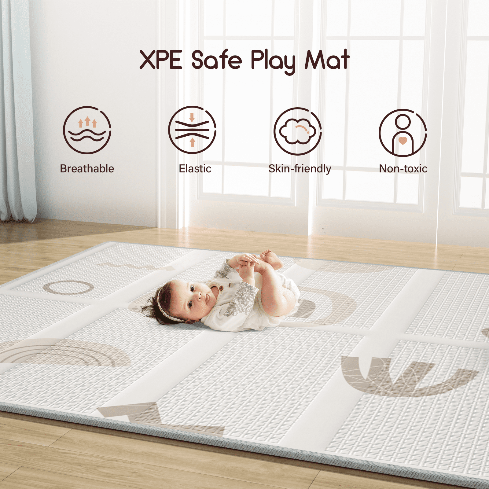 $50.73Original price was: $50.73.$29.23Current price is: $29.23.【Secure Play Area】This 71×59-inch Pkinoicy floor playmat creates enough space to help toddlers learn to flip, stand, crawl, and walk. While also serving as an mat for your baby’s tummy time and play, thick enough to cushion falls, fit perfectly inside the playpen. 【Safe Material】The types of foam used in our baby mat for floor are XPE foam, which is a non-toxic and harmless material for babies and toddlers. The safest protection for mother and baby. 【Waterproof & Easy to Clean】Pkinoicy play mats are waterproof, anti-rips, and not easy to peel. With baby wipes or damp cloths, your baby’s spits, spills, food residue, etc. can be quickly wiped away without any stains and odors.