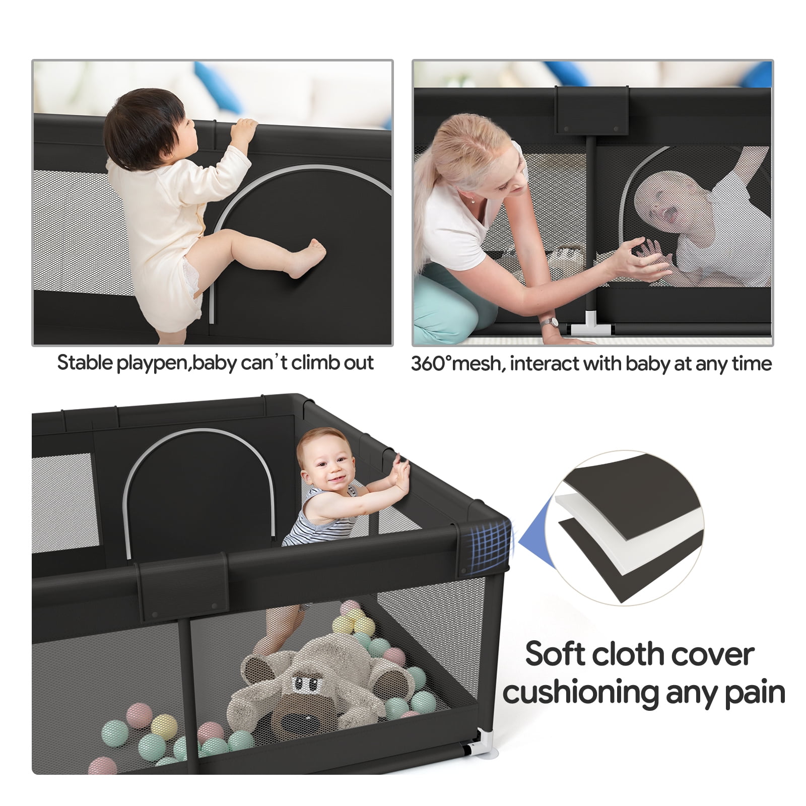 Pkinoicy Black Baby Playpen, 47″x47″, Compact Play Area for Infants and Toddlers – Ideal for Apartments