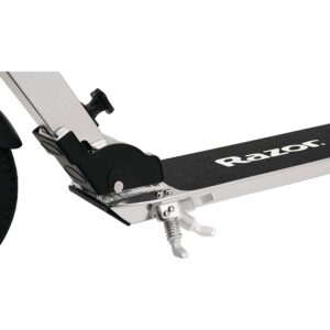 $25.79The original kick scooter, the Razor A2 Kick Scooter is fun for kids and teens alike. Great for speeding around the neighborhood, the Razor A2 scooter requires just a few scoots of one’s shoes. Your child can now reach nearby places faster than on foot with this razor kick scooter. The aircraft-grade aluminum tube and deck makes this scooter sturdy, yet lightweight. The braking system has a patented rear fender brake that ensures quick and easy stops. This 2 wheel kick scooter has a springless shock system for uncomfortable rides on the pavement. The 98mm urethane wheel with ABEC 5 bearings of this razor kick scooter offers a comfortable ride. The folding mechanism of the A2 Kick Scooter helps make this scooter portable. When not in use, you can fold and carry this kid’s kick scooter with you almost anywhere.