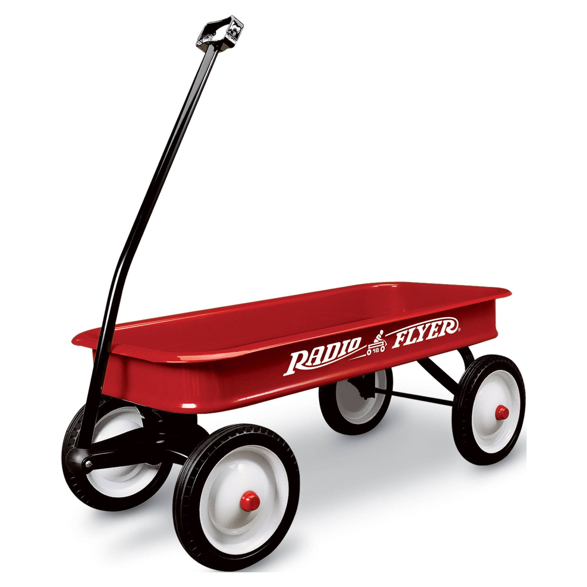 $128.14This classic full-sized Radio Flyer wagon has become a symbol of American childhood. The all-steel seamless body with no-scratch edges and 10 steel wheels with real rubber tires ensure this wagon is built to last for generations of family fun! The wagon also features an extra-long handle that folds under for storage and a controlled turning radius to prevent tipping. Brand Name: Radio Flyer Product Type: Toy Wagon Material: Steel Color: Red Height: 14.37 in. Width: 17.5 in. Length: 36 in. Recommended Age: 1.5+ yr