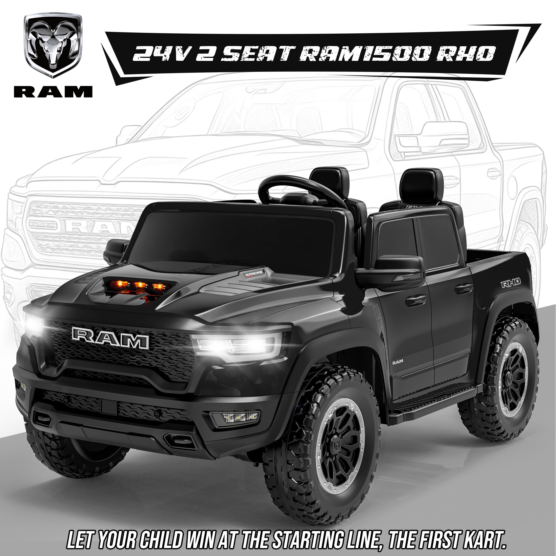 RAM 24V Ride on Cars for Tow Kids, RAM 1500 RHO 2 Seat Battery Powered Ride on Toys with Remote Control, 4 Wheels Suspension Trunk, LED Light, MP3 Player, Electric Car for Kids Boy Girl Gift, Black