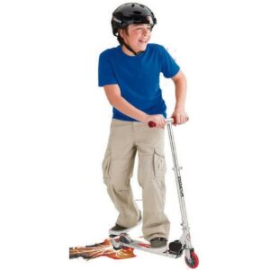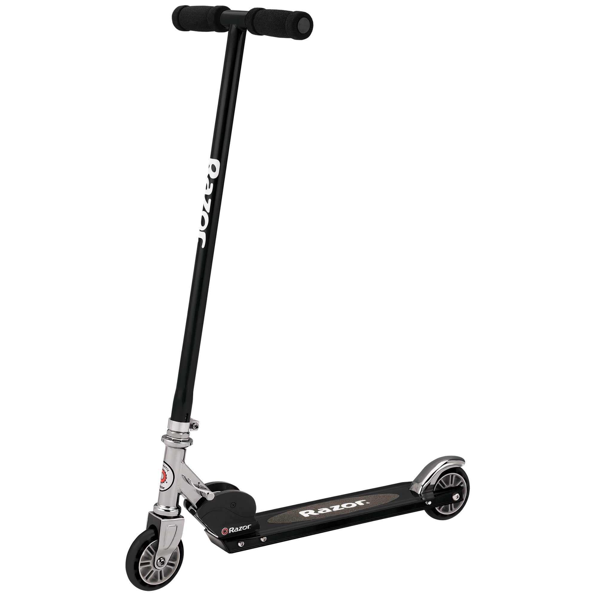 $38.70Encourage kids and teens to be physically active and have a blast while they’re doing it, with a Razor S Scooter. It’s a scaled-down version of the original and the single-frame design makes it more durable and easier to handle. This Black and Silver Razor scooter is great fun in parks, driveways, parking lots and other smooth surface areas. It is durable. The kids’ scooter features urethane wheels with high-speed bearings, for fast speeds that can easily be kept in control with the rear fender brake or simply putting a foot down. The patented rear fender brake makes it even easier to steer and maneuver. It also features molded grip handles and an easy grip, skid and slip-resistant surface. With a weight capacity of up to 110 lbs, this toy is ideal for ages 5 and up. Be sure to add a helmet, elbow pads, knee pads and other safety accessories, which are available separately.