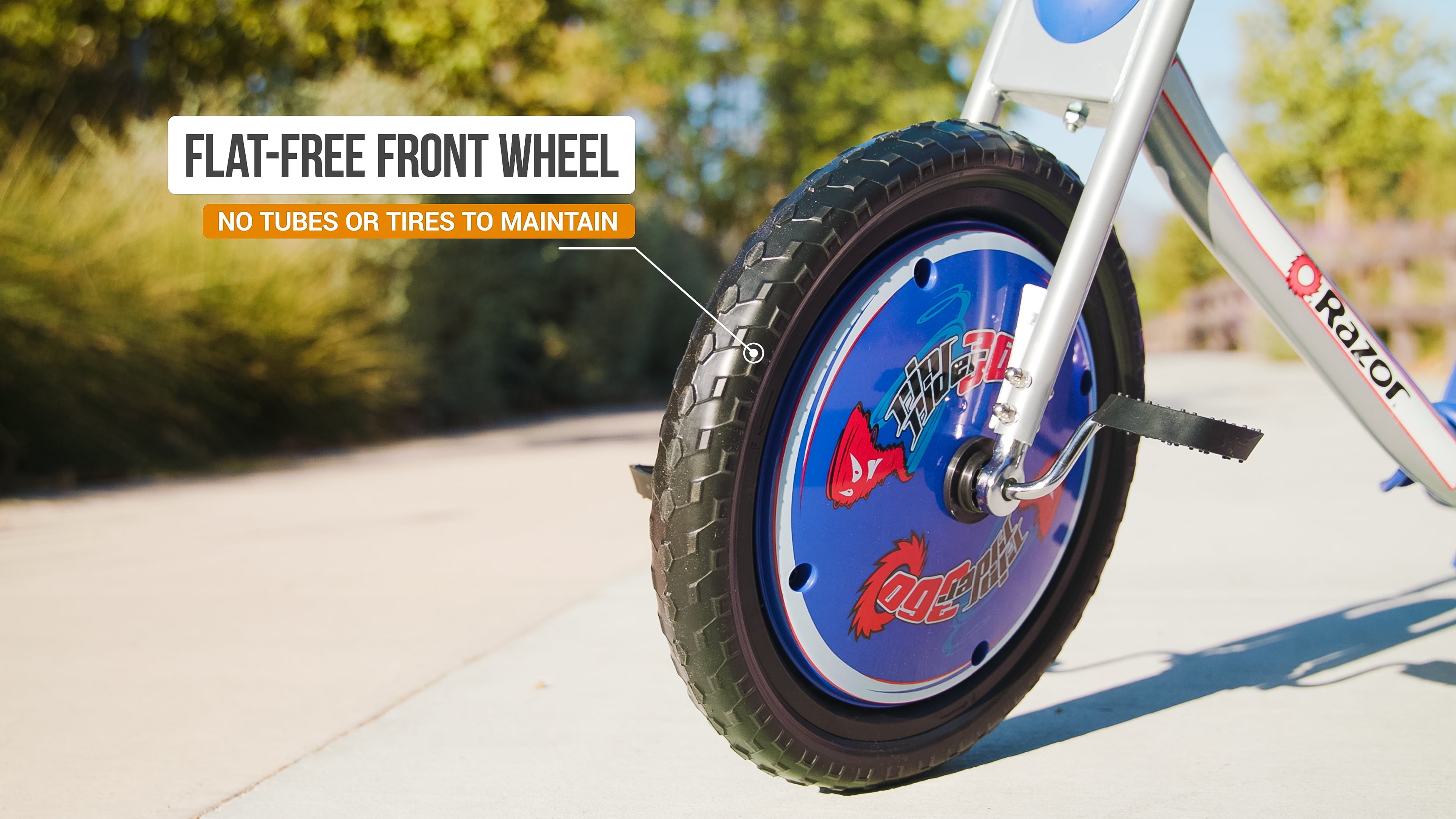 $116.56The Razor RipRider 360 will take your kid to another level of fun. Designed with innovative dual inclined caster wheels, this three-wheeled trike effortlessly drifts into 360-degree spins. The large, flat-free front tire propels unlimited rolling action. Cool motocross styled handlebars with soft rubber grips boost comfort and durability. Built for children ages 5 and up, this Razor tricycle has a weight capacity of 160 pounds. Made for adventurous kids who love to cruise and spin, the Razor RipRider 360 will not disappoint.