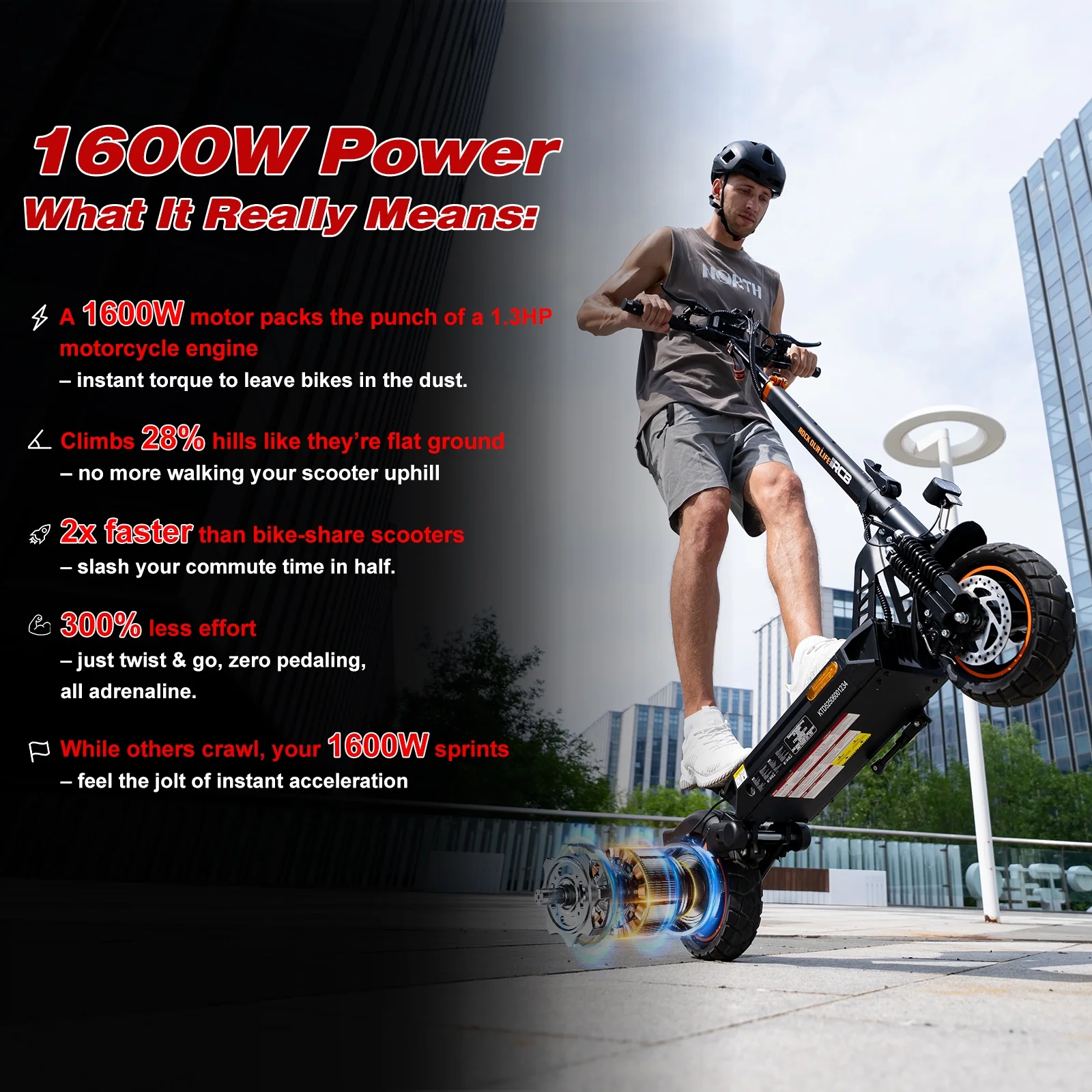 RCB D5PRO Electric Scooter Adult,1600W Peak Motor, 48V27Ah Battery, Up to 80 Miles Range, 10″Anti-Flat Off-Road Tires, Dual Brakes&Dual Suspension, Foldable Commuter Scooter with App & NFC