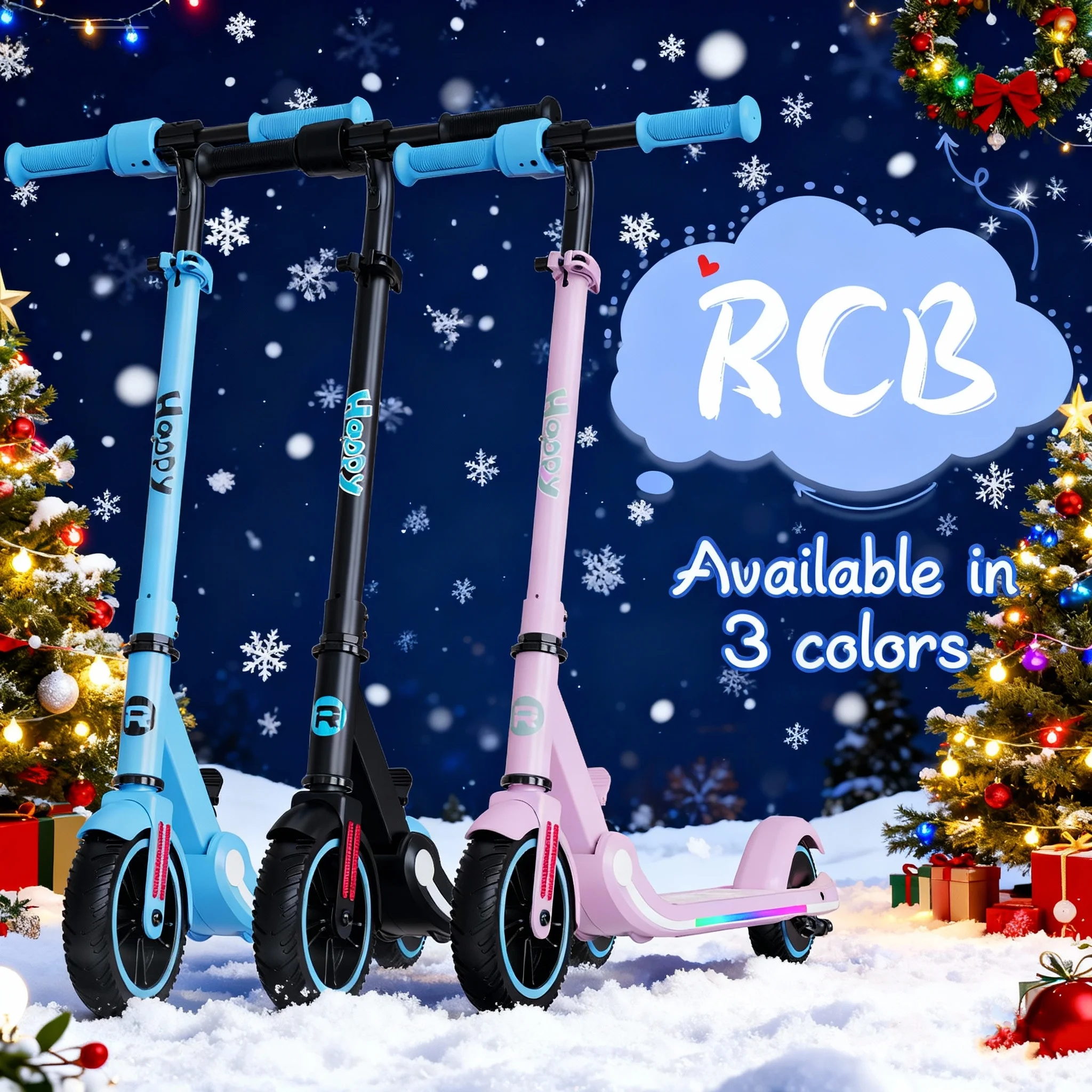 RCB R12Pro Electric Scooter for Kids,Max Speed 12 mph,10 Miles Range,Rainbow LED Lights&Display,Foldable&Portable,Black