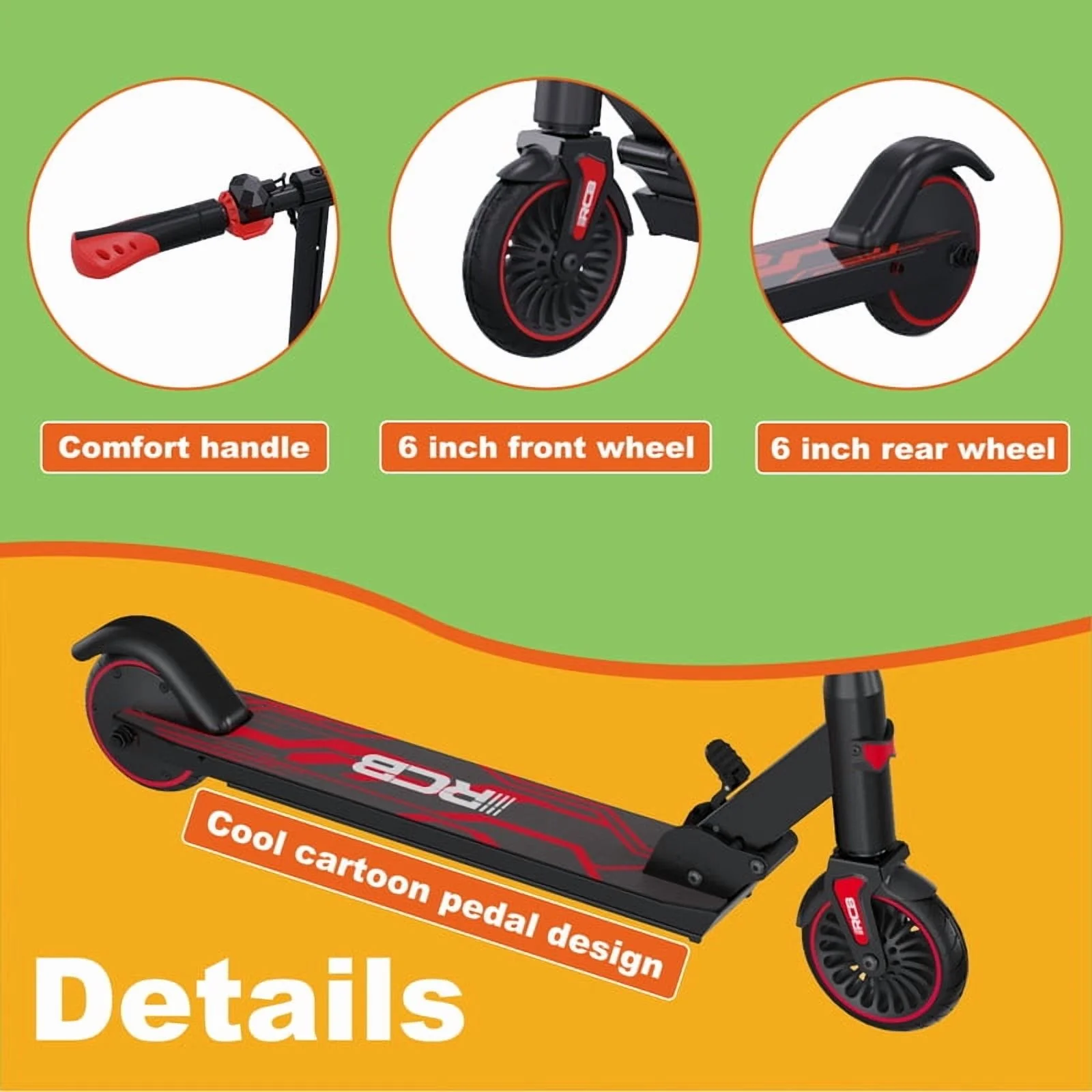 RCB Electric Scooter for Kids Ages 8+, Lightweight and Foldable, 250W Motor, Max 10 Mile & 12.5Mph, Double Brake, Adjustable Height Anti-Slip Handlebars,Red