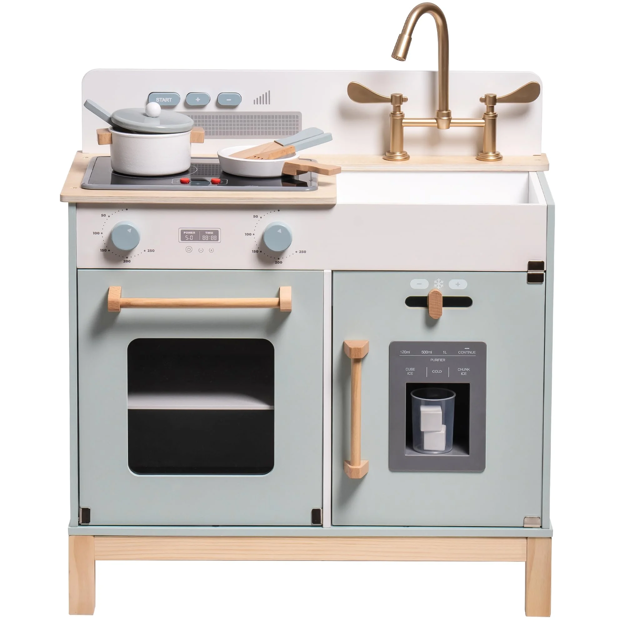 Robud Play Kitchen for Toddlers,Wooden Kids Play Kitchen Playset with Lights & Sounds/Ice Cube Dispenser,Pretend Play Montessori Toy Kitchen, Gift for Ages 3+,Blue