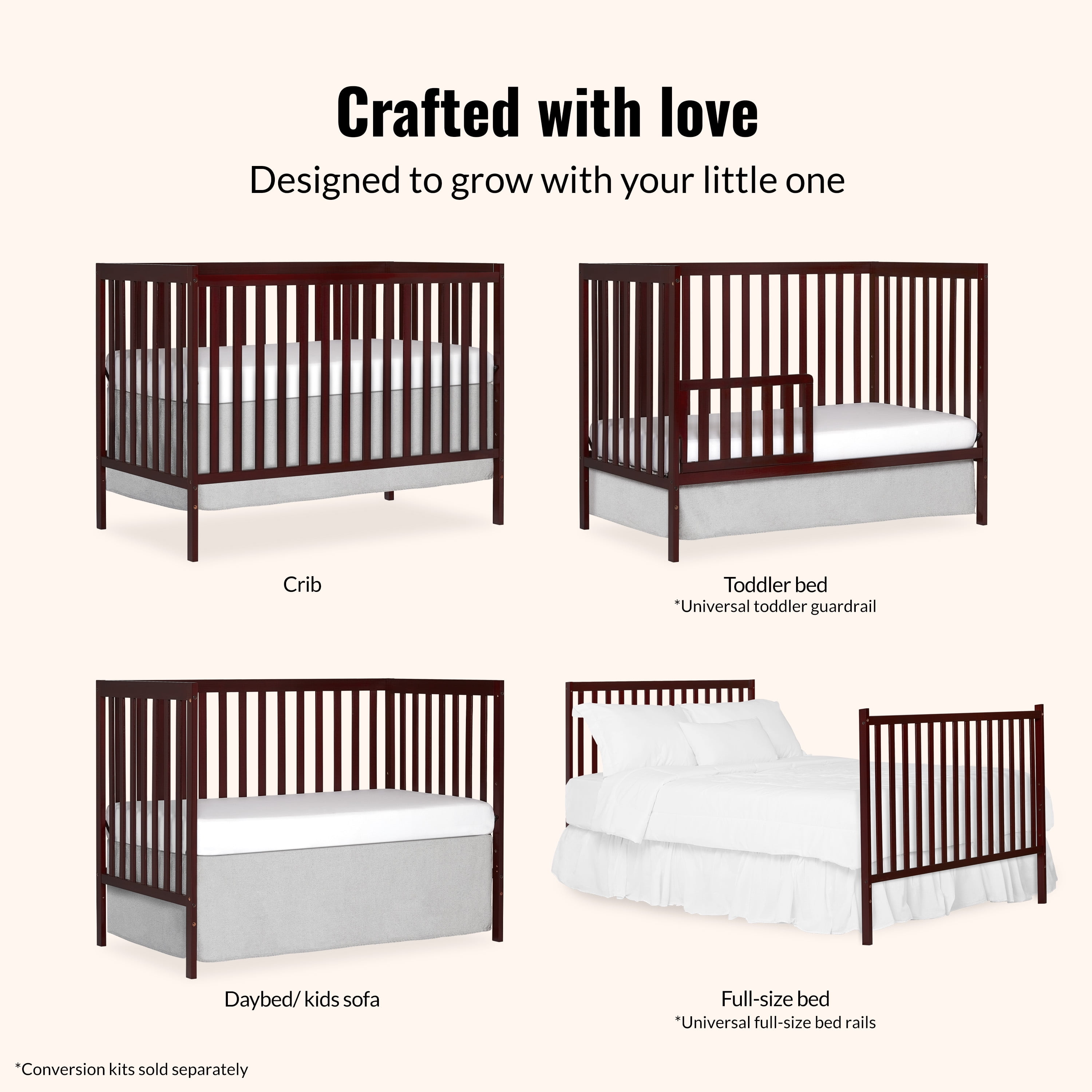 Dream On Me Synergy 5-in-1 Convertible Crib in Cherry, Greenguard Gold Certified