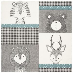 SAFAVIEH Carousel Kids Penguin in the Snow Area Rug, Light Gray/Black, 5’3″ x 7’6″